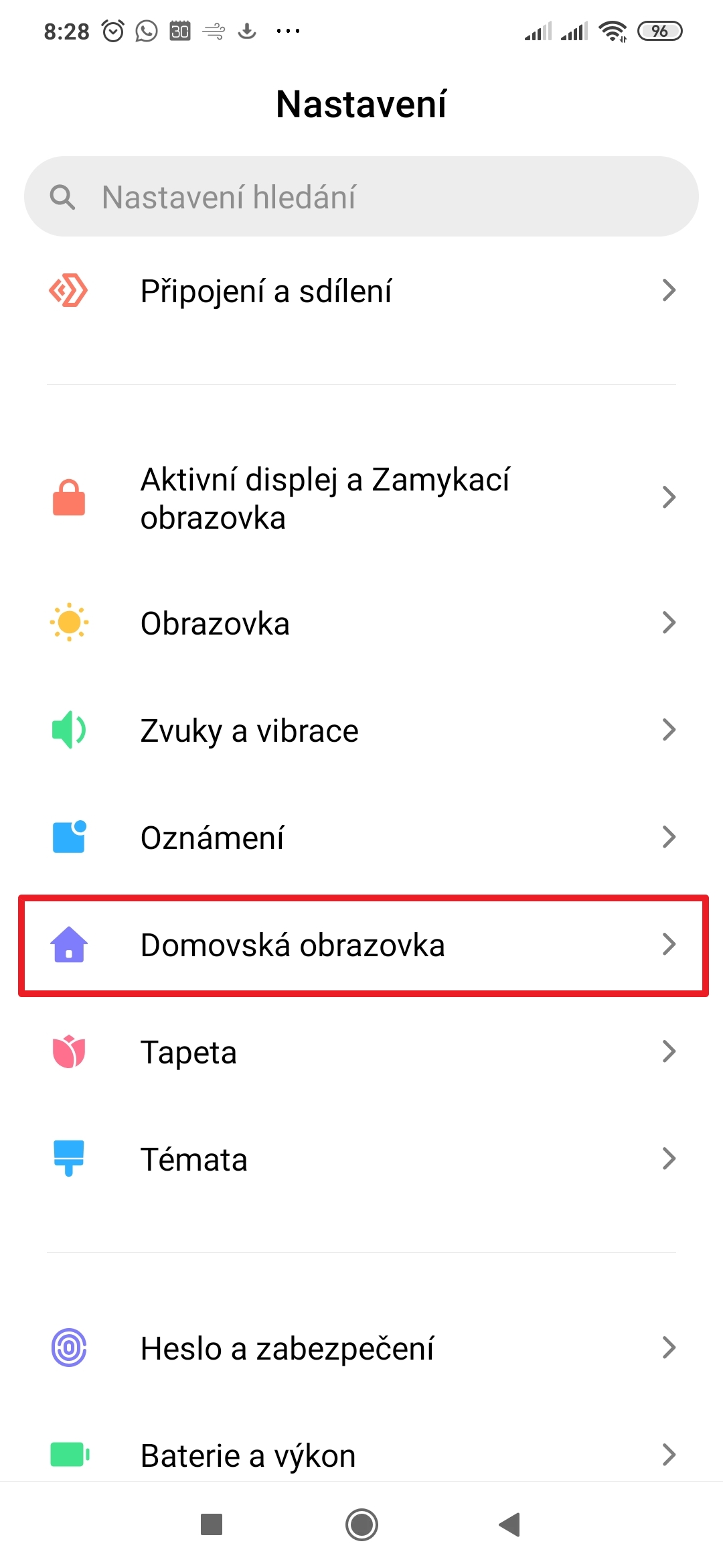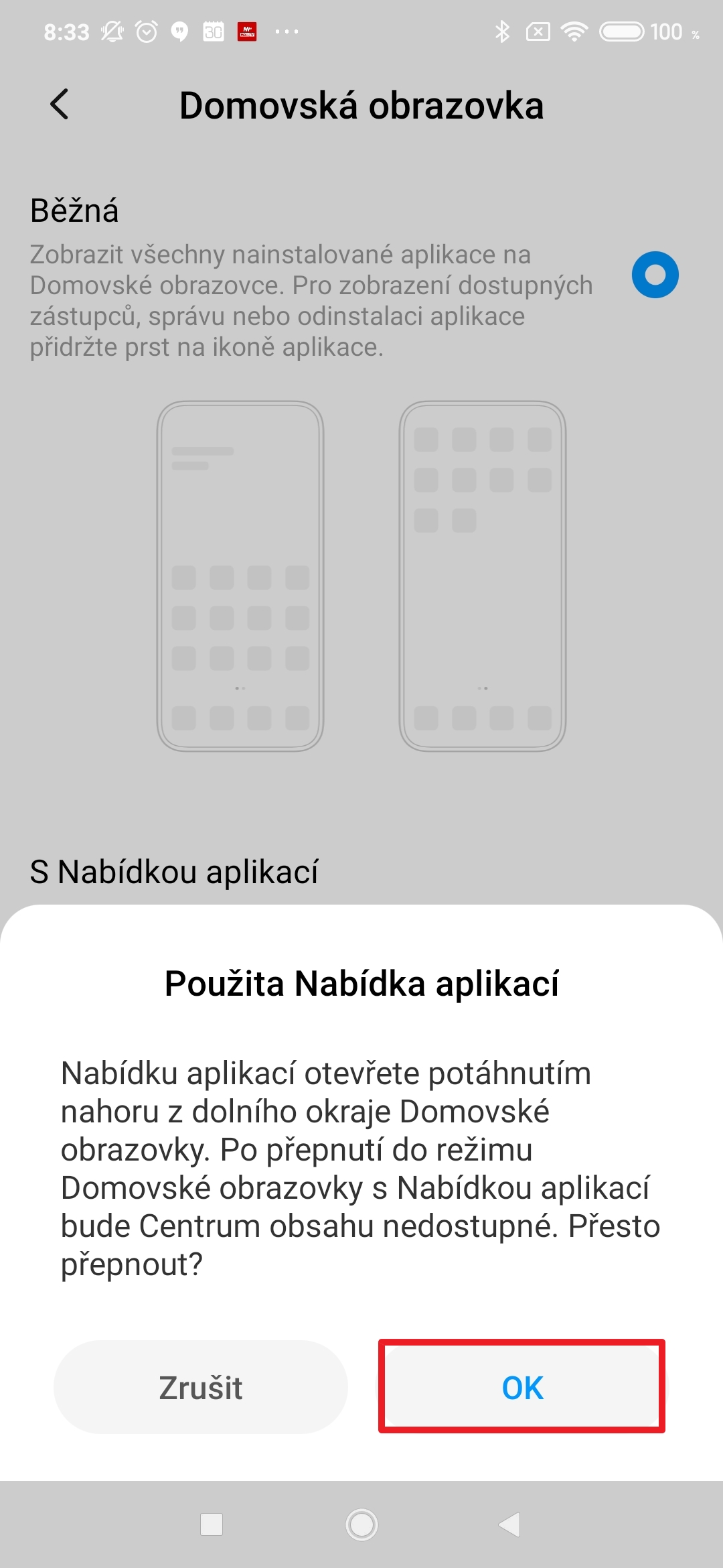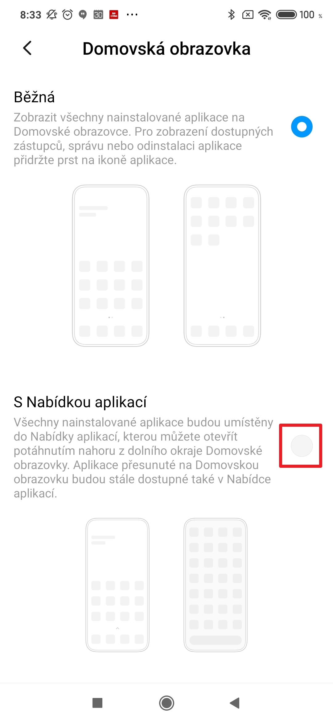 - Pokud zde vidíte volbu Domovská obrazovka, pak váš MIUI Launcher podporuje tradiční seznam aplikací.