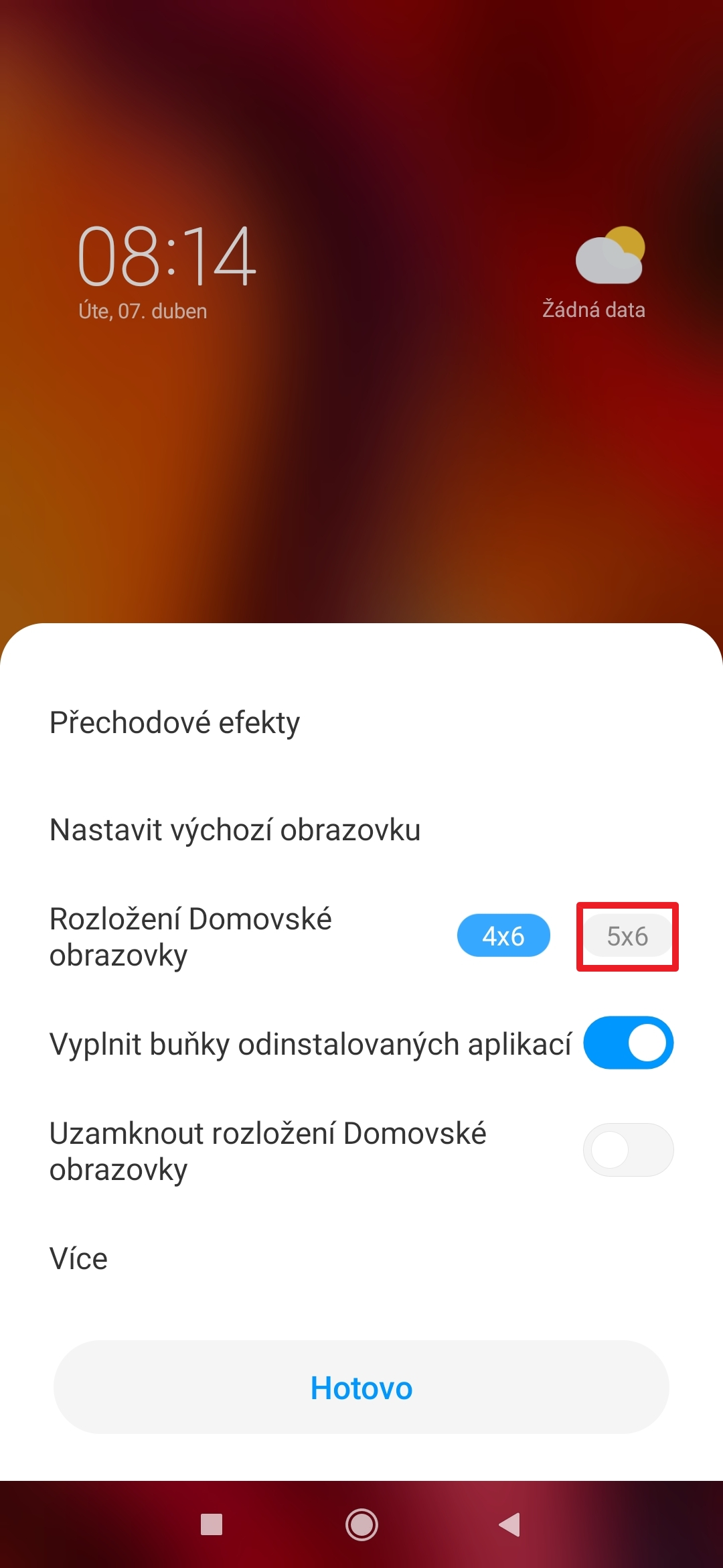 - V dialogu změňte Rozložení Domovské obrazovky z původního 4×6 na 5×6.