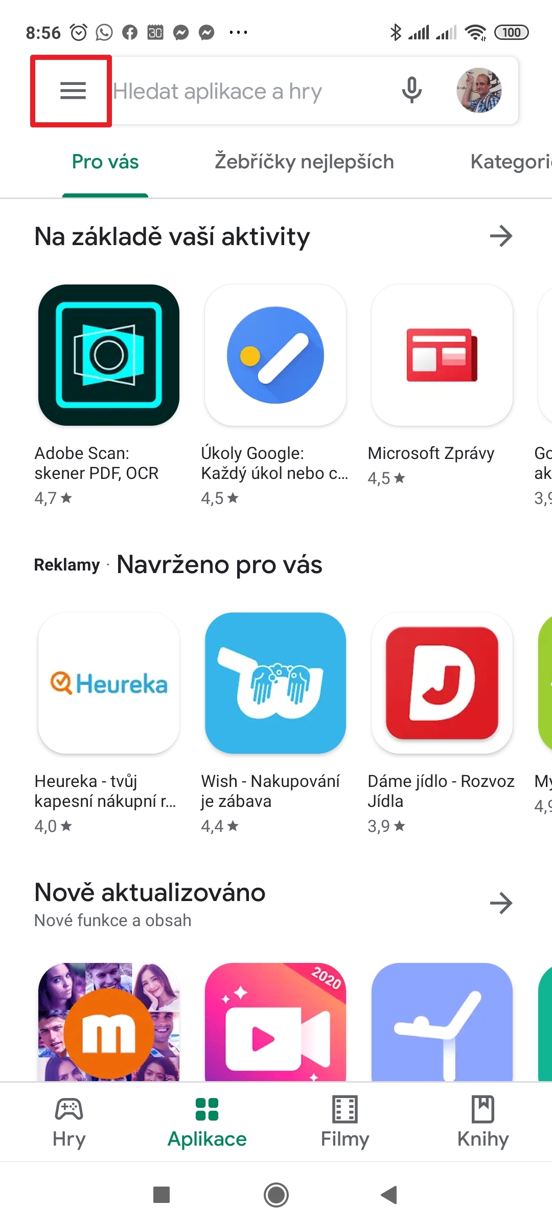 - Klepnutím na tlačítko se třemi čárkami v levém horním rohu otevřete postranní nabídku.