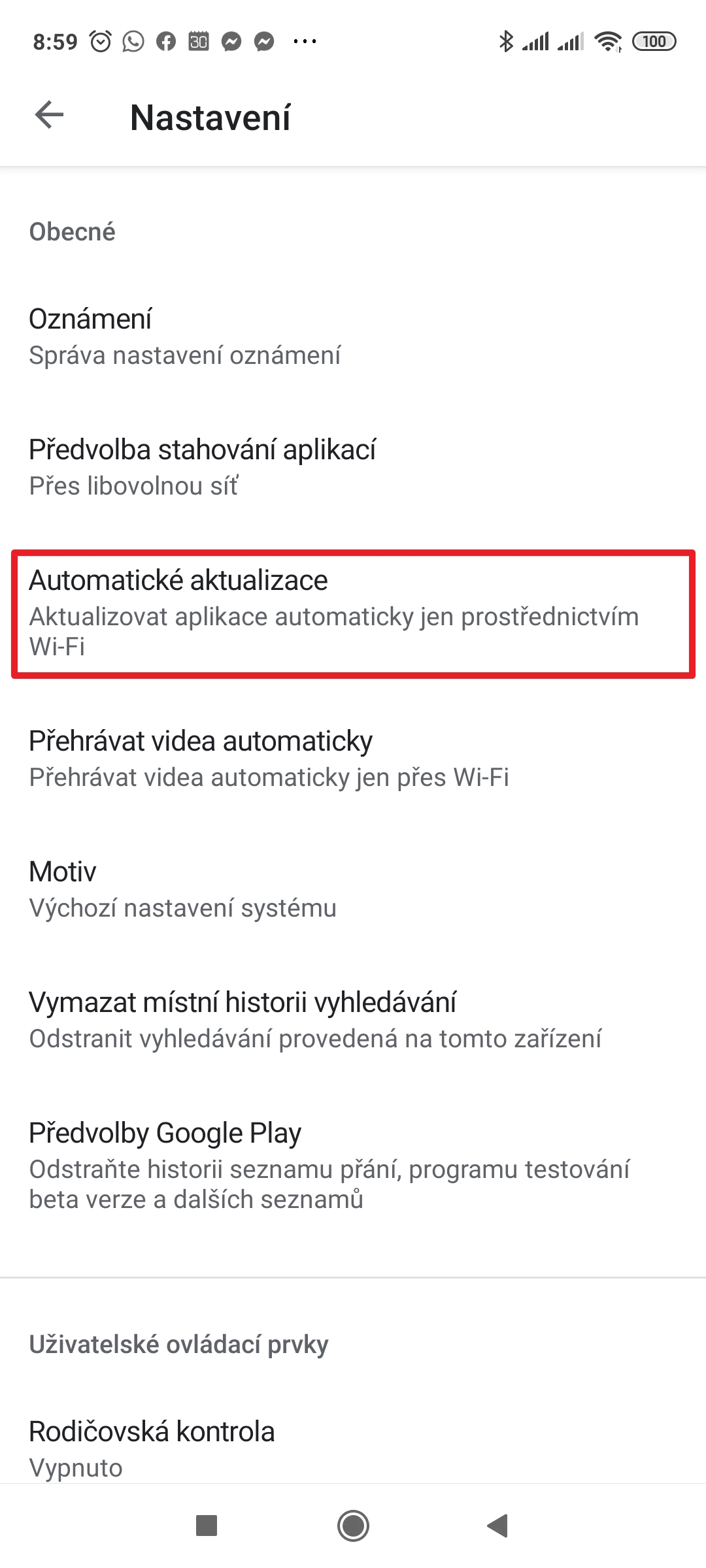 Jestliže chcete automatické aktualizace úplně zakázat, můžete použít volbu Neaktualizovat aplikace automaticky. To ale nedoporučujeme, neboť aktualizace kromě nových funkcí také opravují nalezené chyby, včetně bezpečnostních.