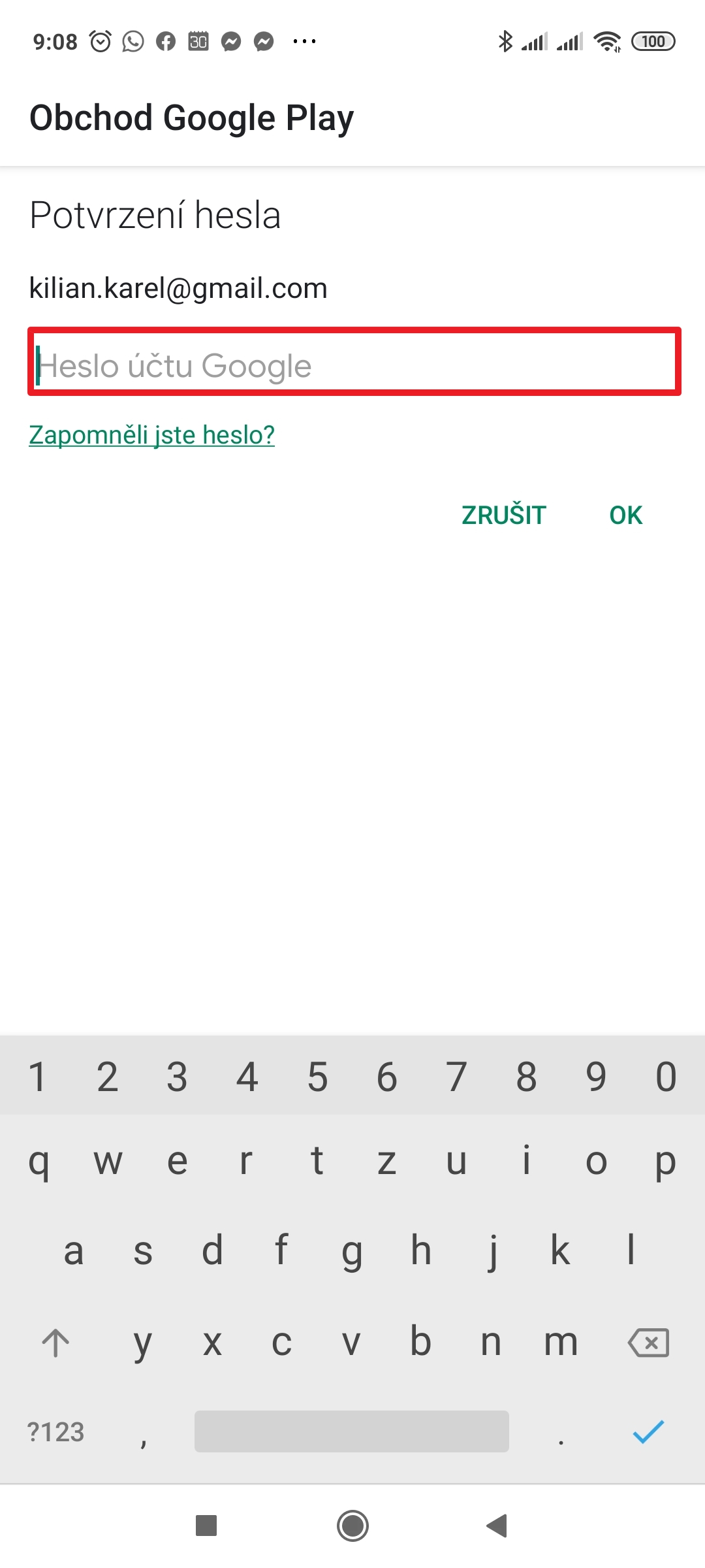 V případě požadavku na stažení placeného programu nebo nákupu v rámci aplikace bude nutné nejprve zadat heslo k účtu Google.