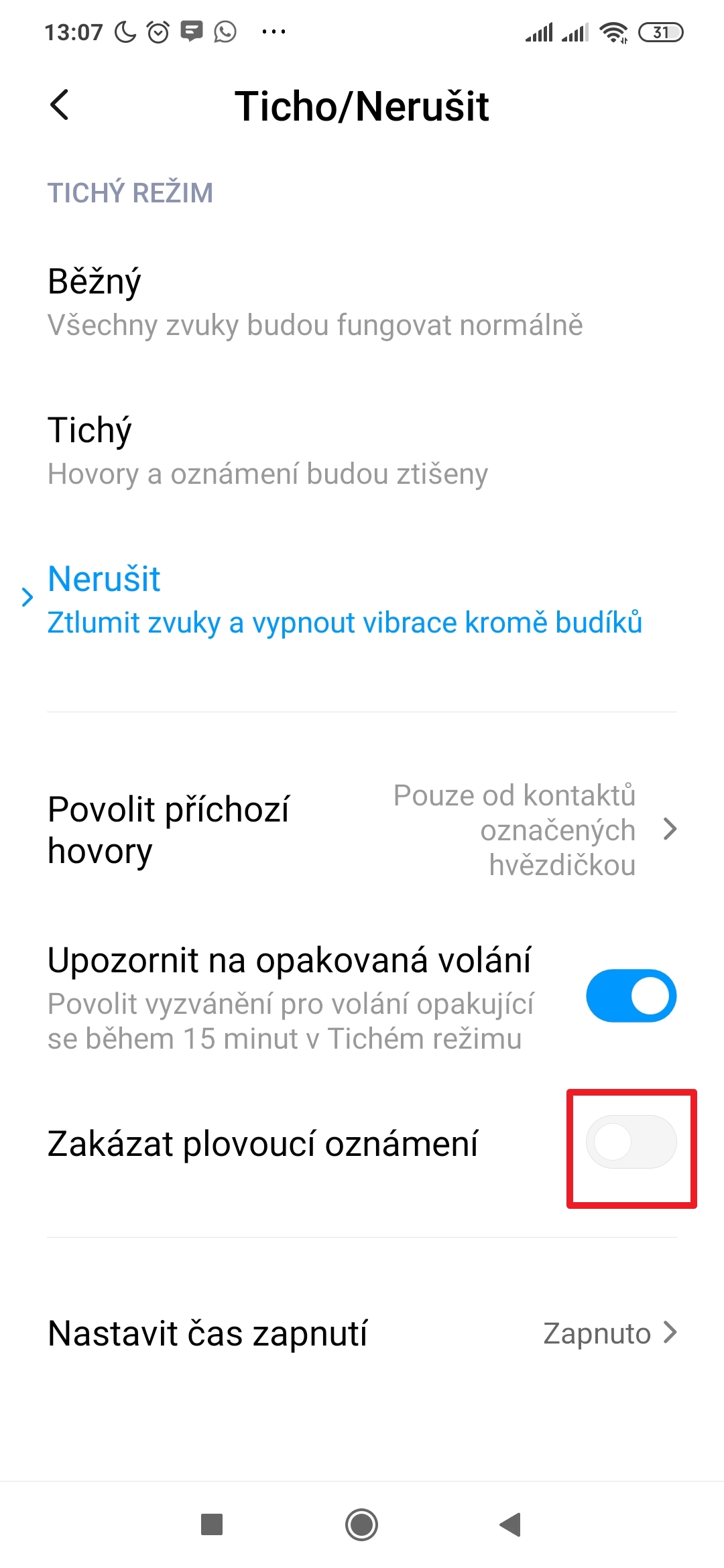 Dobrý den, mám telefon redmi note 8 pro,a mám problém s režimem nerušit.