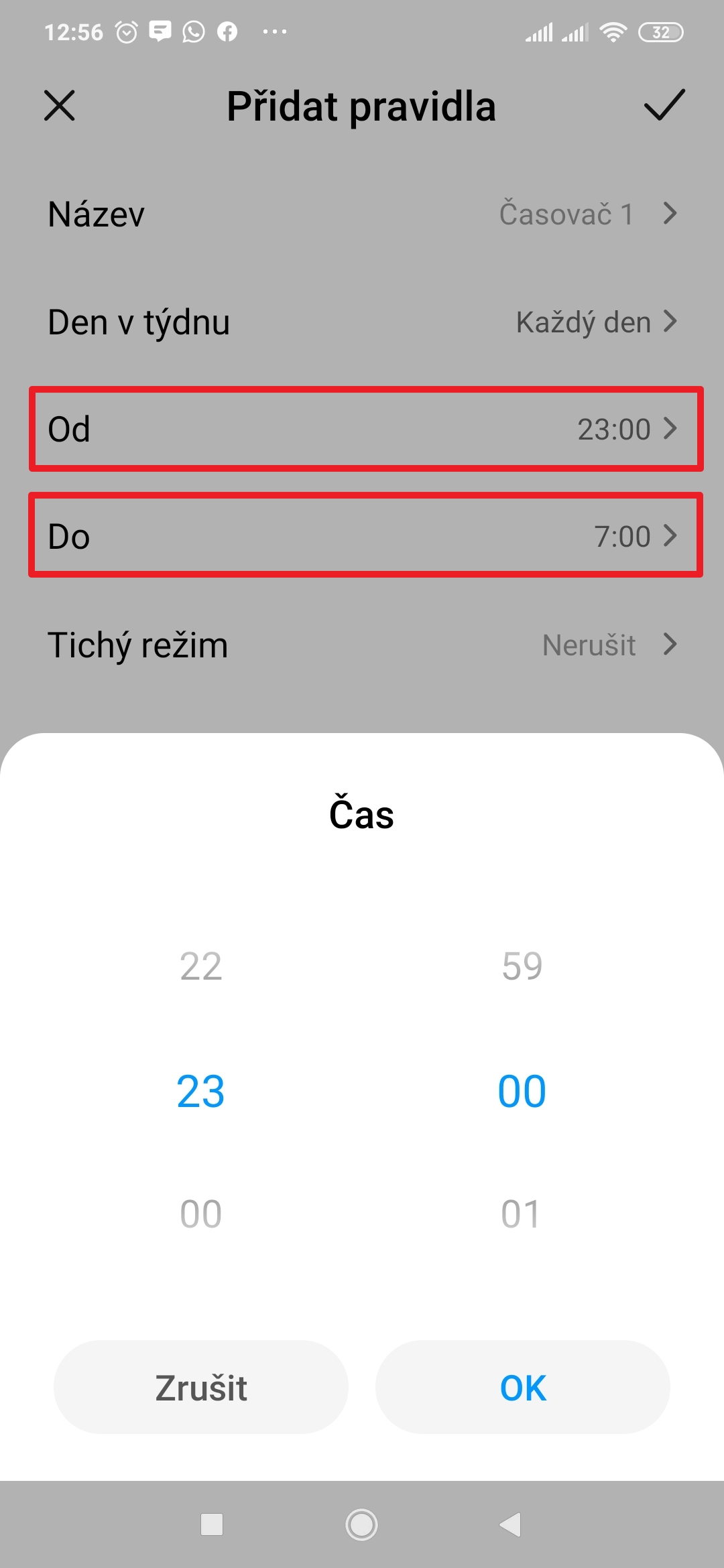 - Nastavte časy Od a Do kdy bude režim aktivní.