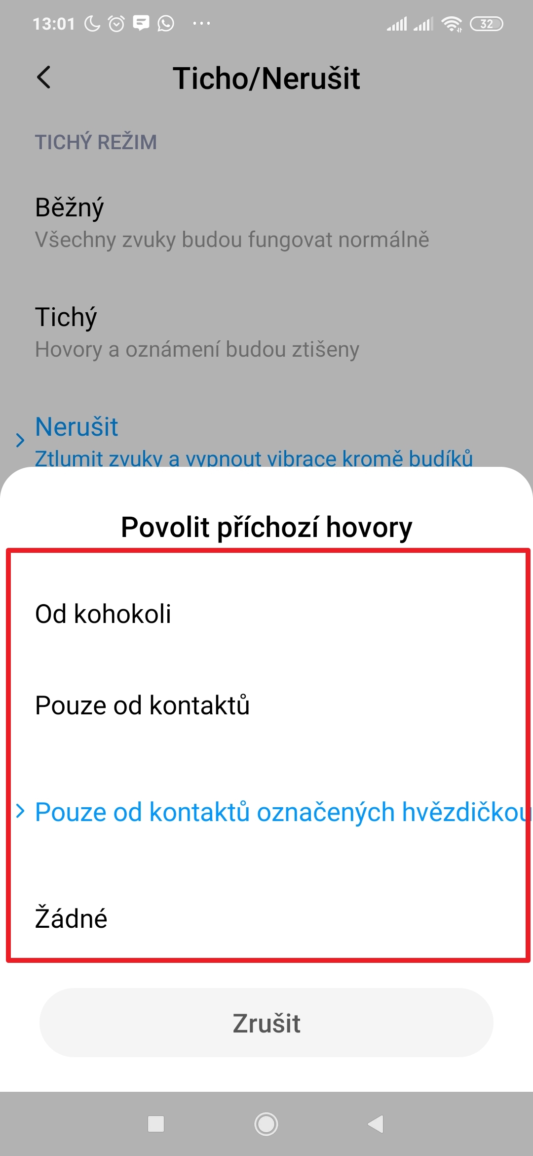 @jak v režimu Nerušit povolit u kontaktů s hvězdičkou i jiné zvuky (whatsapp, sms)