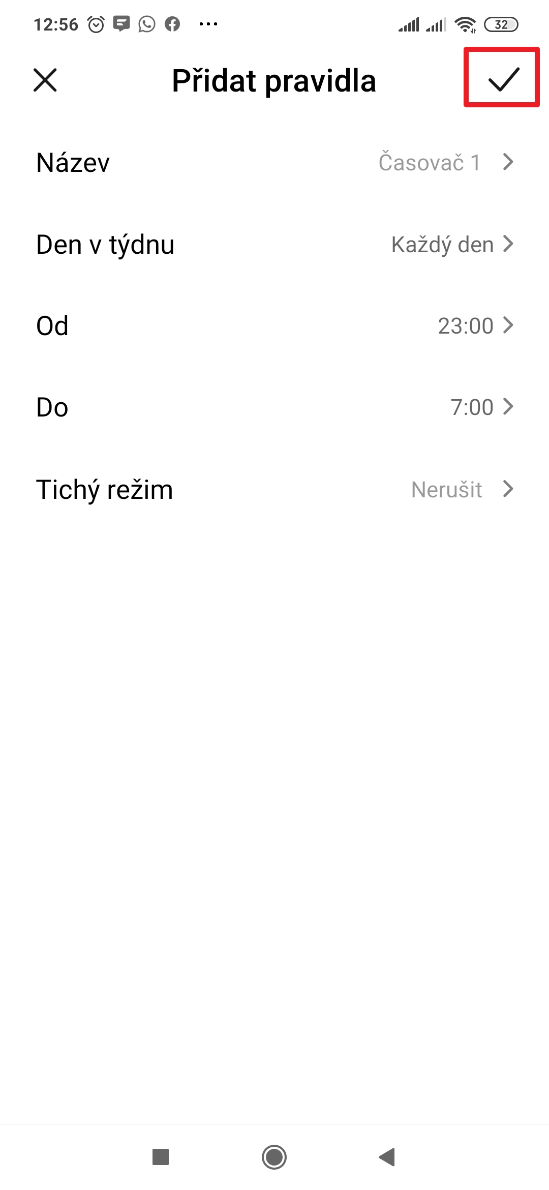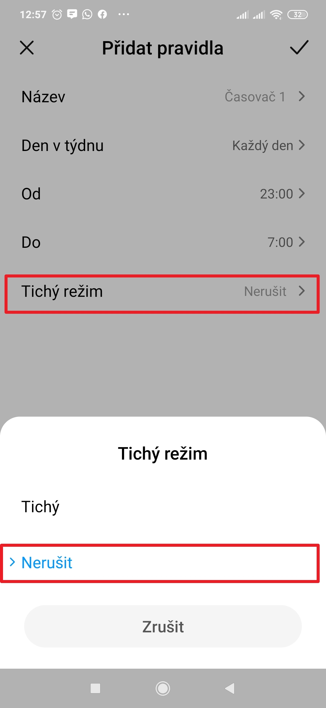 Režim nerušit – automatické zapínání a vypínání v určený čas