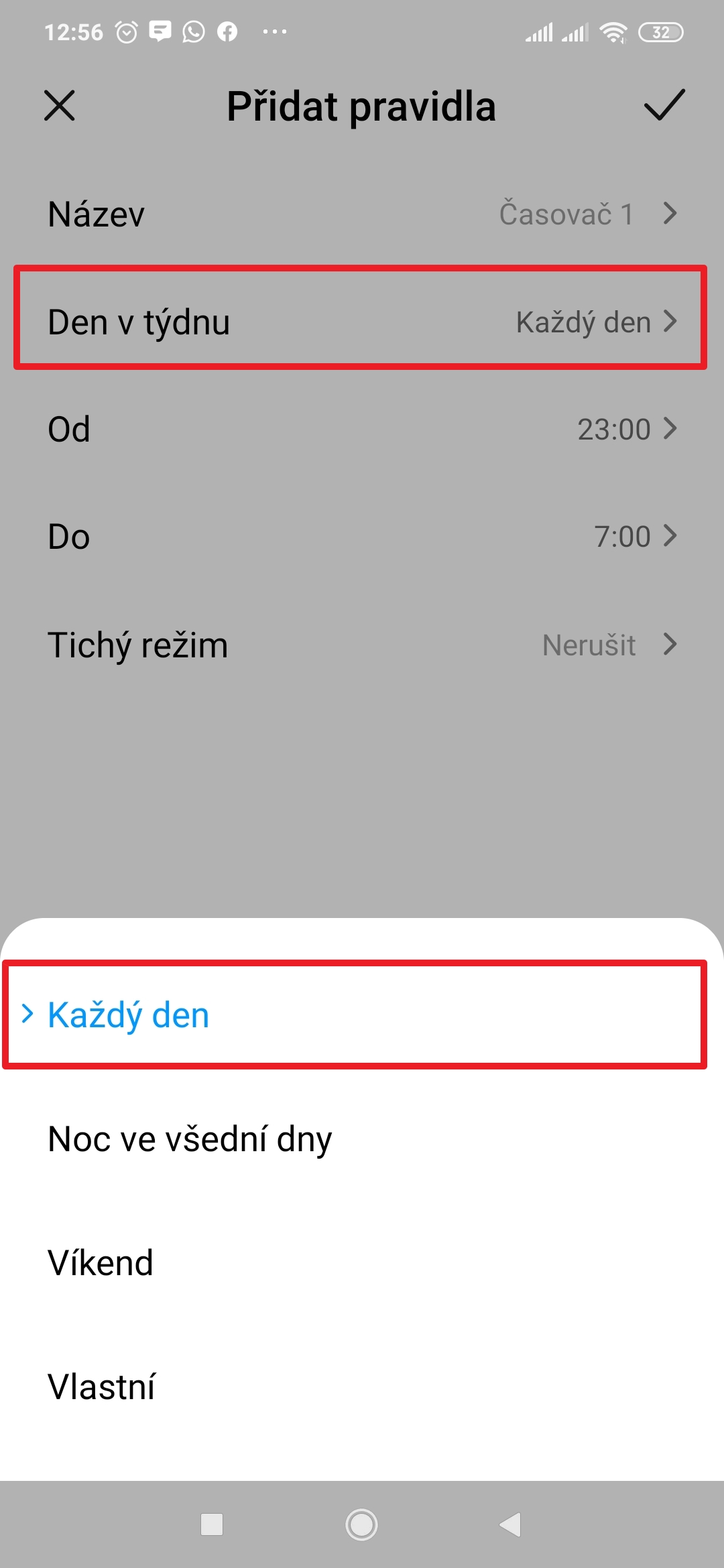 - Tímto způsobem můžete nastavit několik nezávislých pravidel – například jiná pro všedni a odlišná pro víkendy.