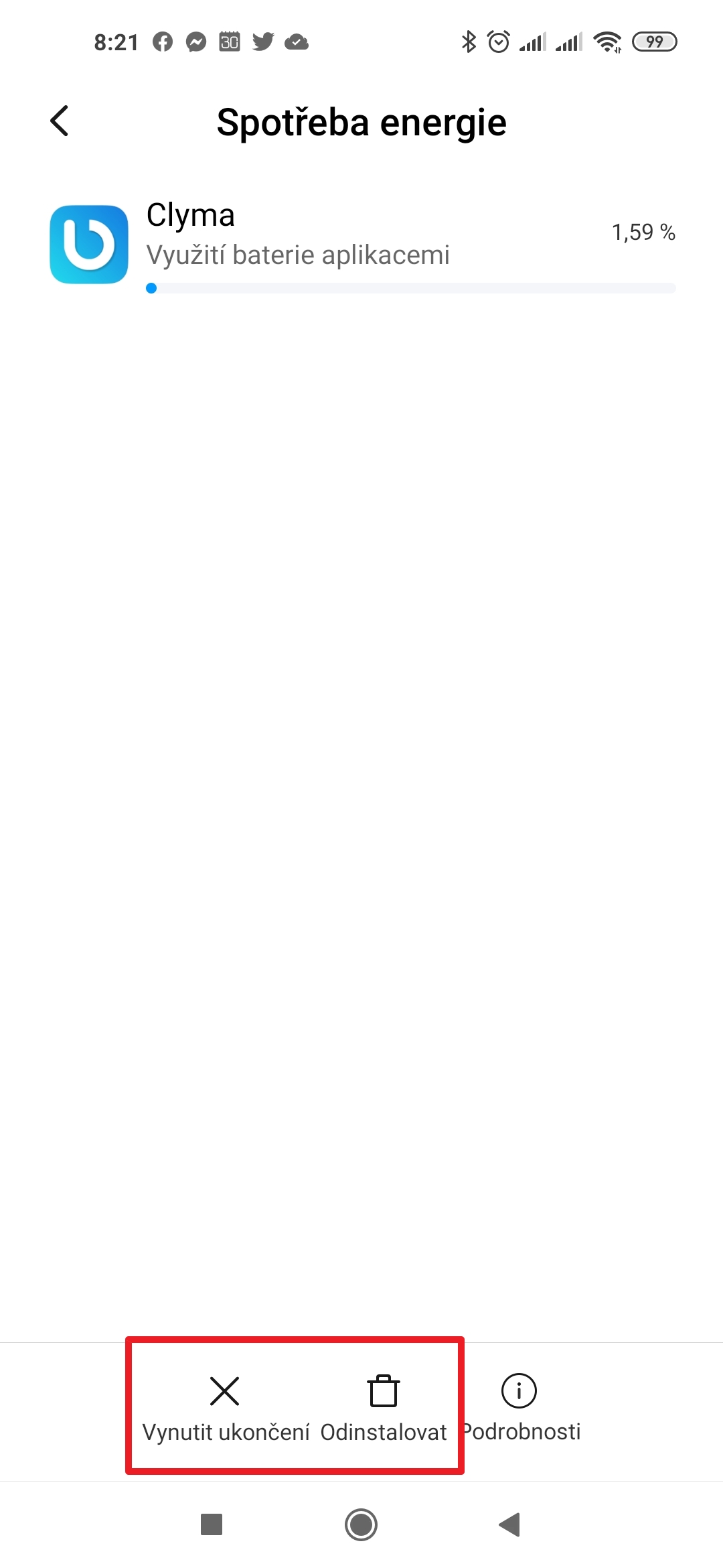 6. Klepnutím na aplikaci ji můžete nuceně ukončit, nebo odinstalovat.