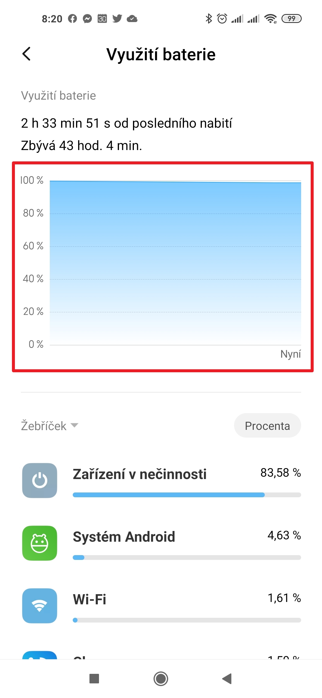 4. V horní části okna můžete vidět graf průběhu vybíjení baterie.