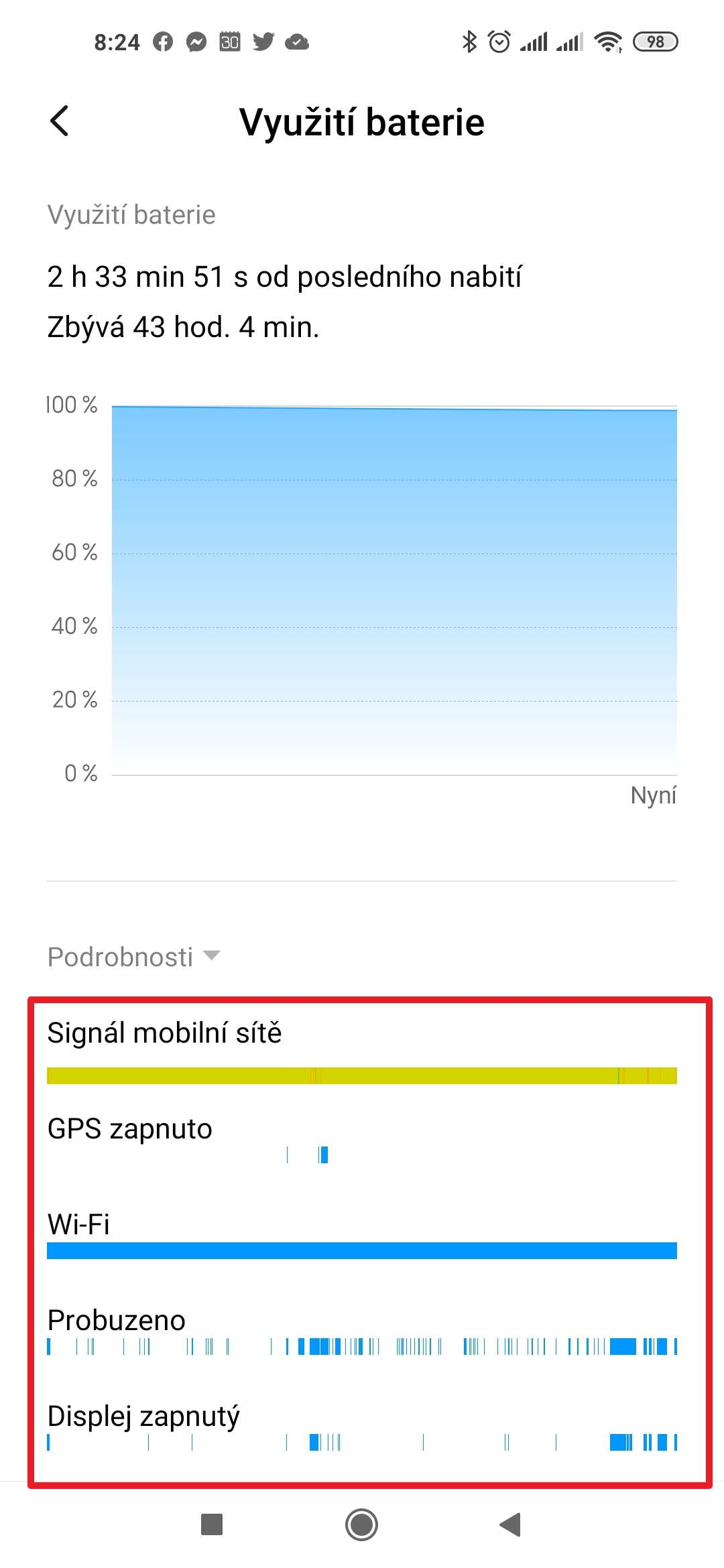 Pokud je například telefon permanentně v probuzeném stavu, je něco špatně – patrně nějaká aplikace zabraňuje přechodu do režimu spánku, což určitě není dobře. Stejně tak pokud indikátor ukazuje, že neustále svítí displej, může být příčina v nějaké aplikaci, která brání jeho zhasnutí.