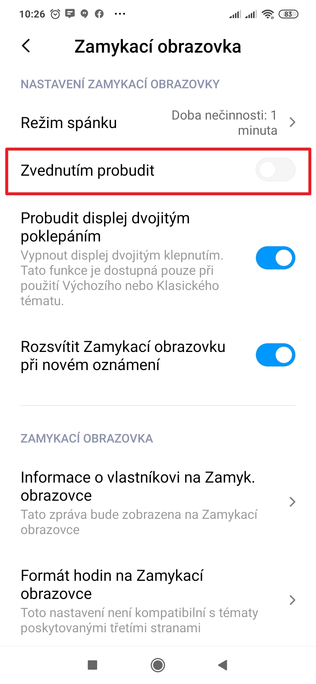 Dobrý večer, mám nový redmi9 a nejde mi vypnout probuzení telefonu zvednutím. Když vypnu funkci probudit zvednutím, probudit poklepáním tak pokaždé když vezmu telefón do ruky tak se rozsvítí displej. Jdu s telefonem a držím ho v ruce a displej se zapne vypne zapne vypne. Je to strašný. Můžete mi poradit? Děkuji