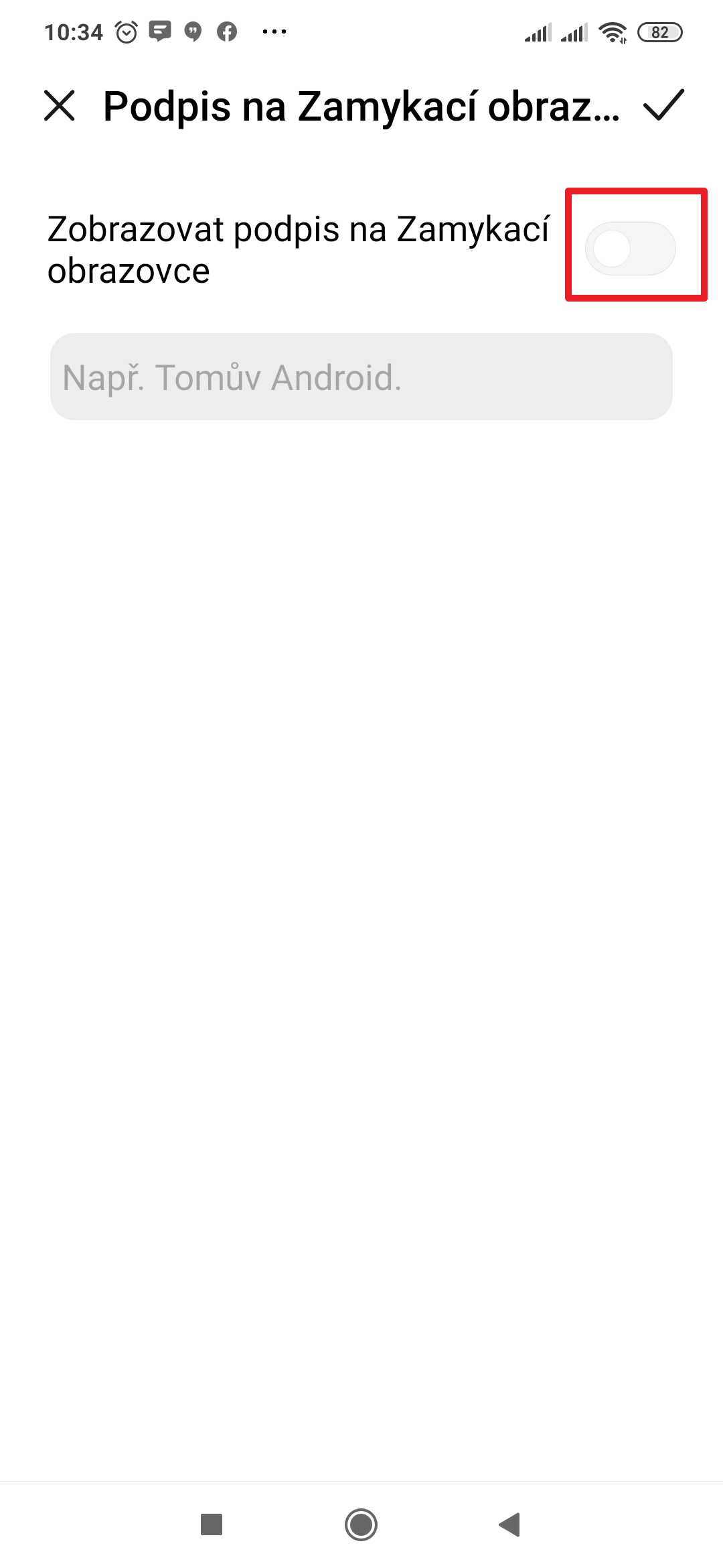 - Aktivujte volbu Zobrazovat podpis na Zamykací obrazovce.