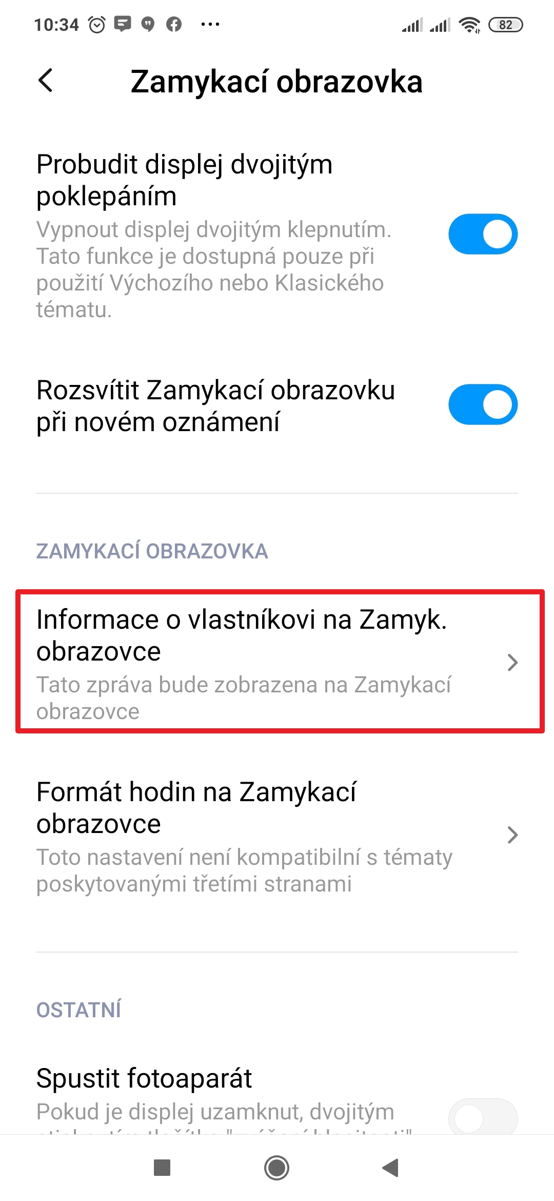 Na zamykací obrazovce můžete nechat zobrazovat informace, které budou viditelné při probuzení telefonu. To se hodí například pro případ, kdy telefon najde poctivý nálezce, ale nemůže ho odemknout.