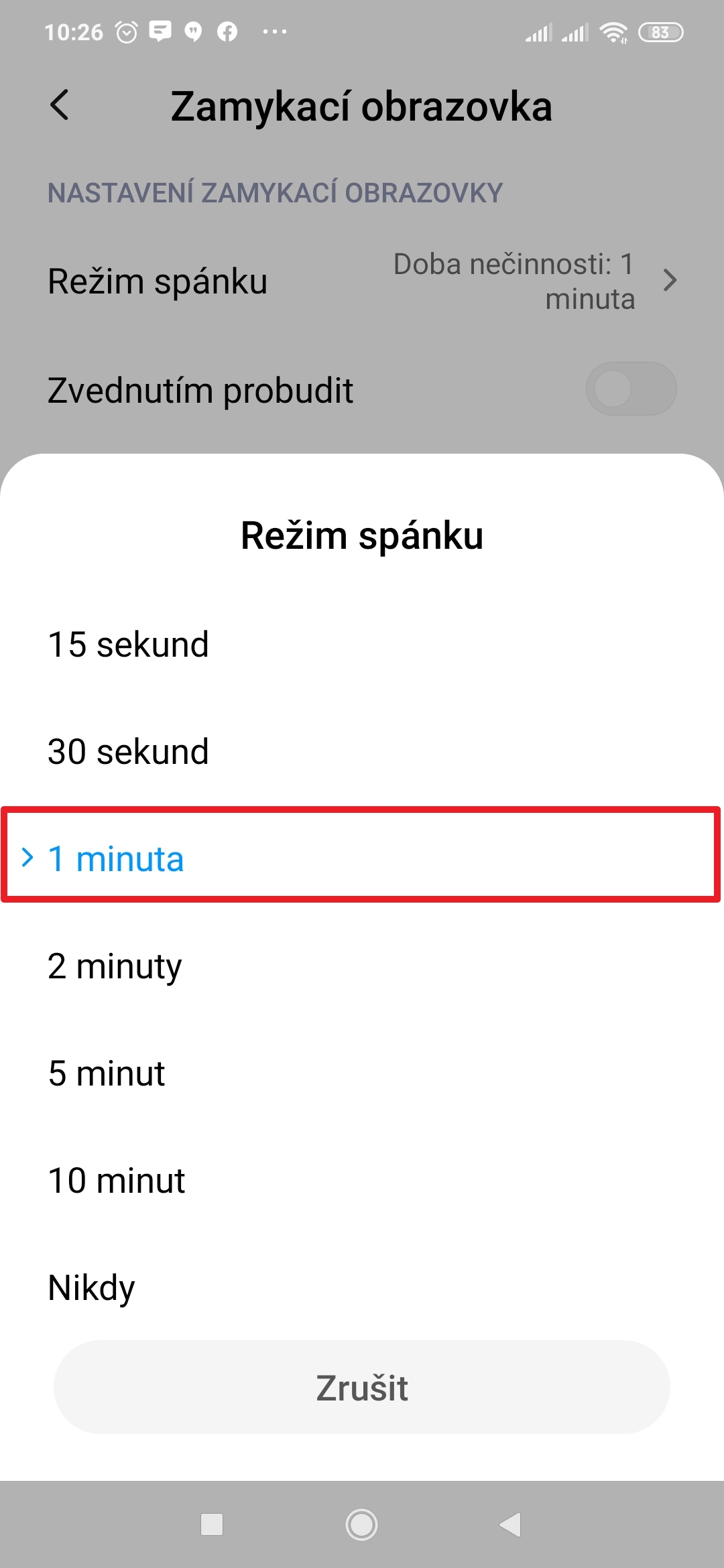 Pokud s telefonem nějakou dobu nepracujete, přejde do takzvaného režimu spánku. Je to logické opatření, které má za účel šetřit baterii zařízení. Můžete určit, po jak dlouhé době má telefon do režimu spánku přejít. Obecně se dá říci, že čím kratší dobu zvolíte, tím pozitivnější bude vliv na spotřebu baterie.