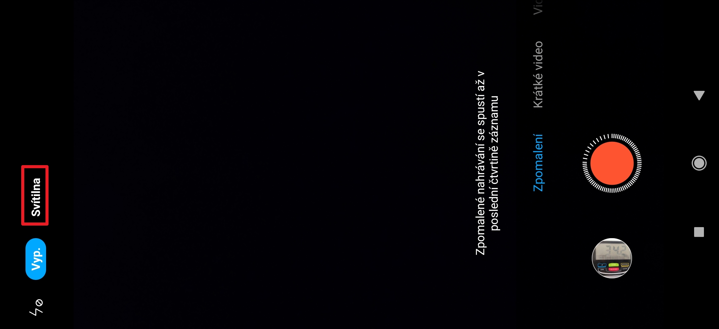 - Pomocí voliče režimů, situovaného po pravé straně obrazovky, přepněte na možnost Zpomalení.