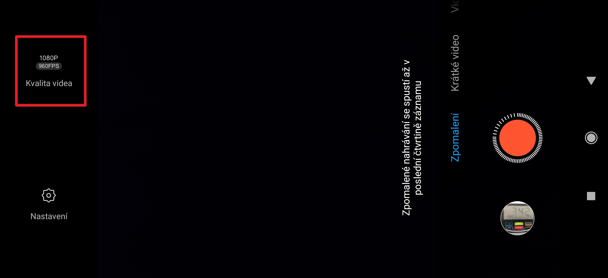 Jak jsme si řekli výše, většina telefonů Xiaomi nabízí zpomalená videa natáčená rychlostí 120, respektive 240 snímků za sekundu. Ty nejvýkonnější modely pak nabídnou i 960 snímků za sekundu. K přepínání slouží tlačítko, které se v režimu na šířku nachází na levé straně obrazovky.