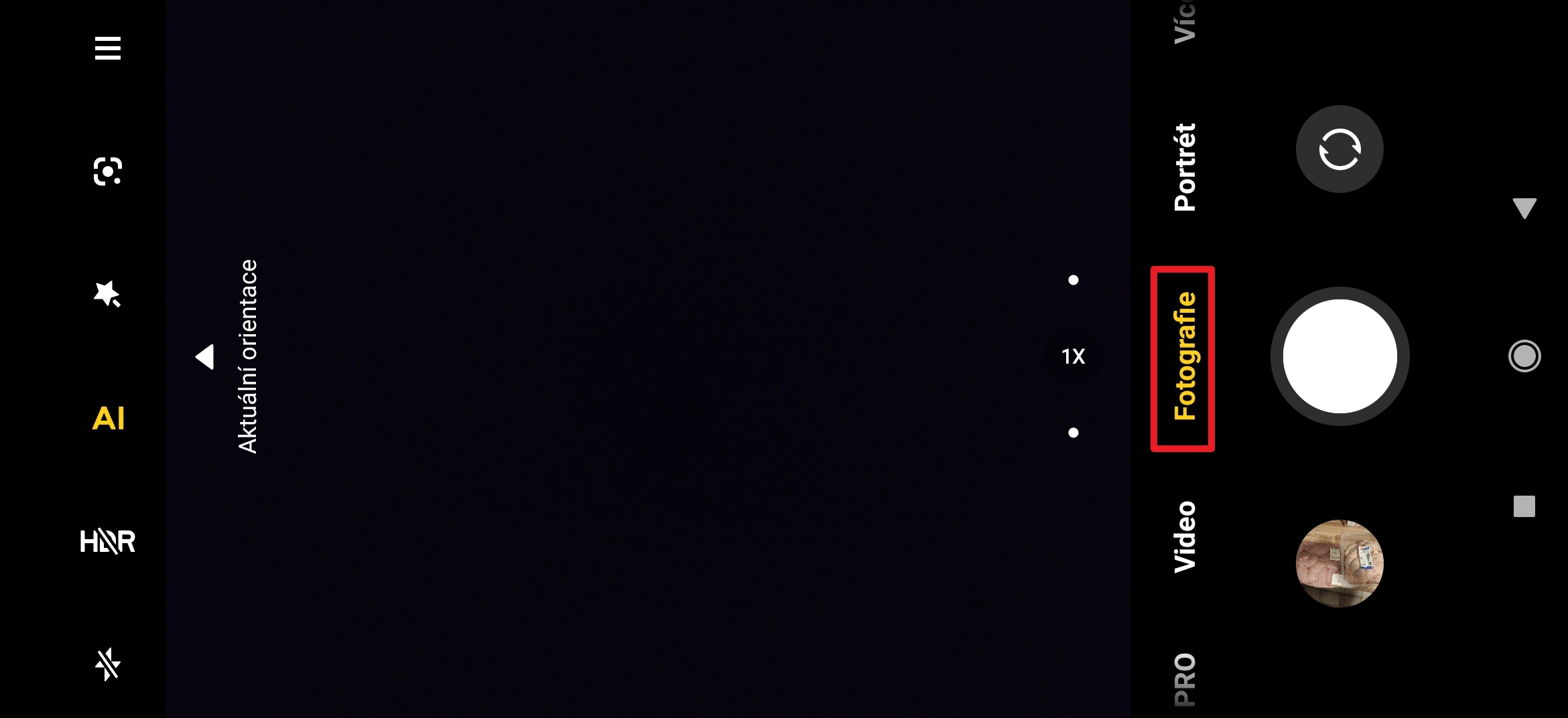 Pokud rozumíte fotografování více do hloubky, pak vám možná přijde vhod režim PRO. Zatímco výchozí režim Fotografie spoléhá na automatiku (a volitelně na umělou inteligenci), zde si můžete nastavit některé parametry ručně. K dispozici je například volba používaného fotoaparátu, ISO, vyvážení bílé a další možnosti.