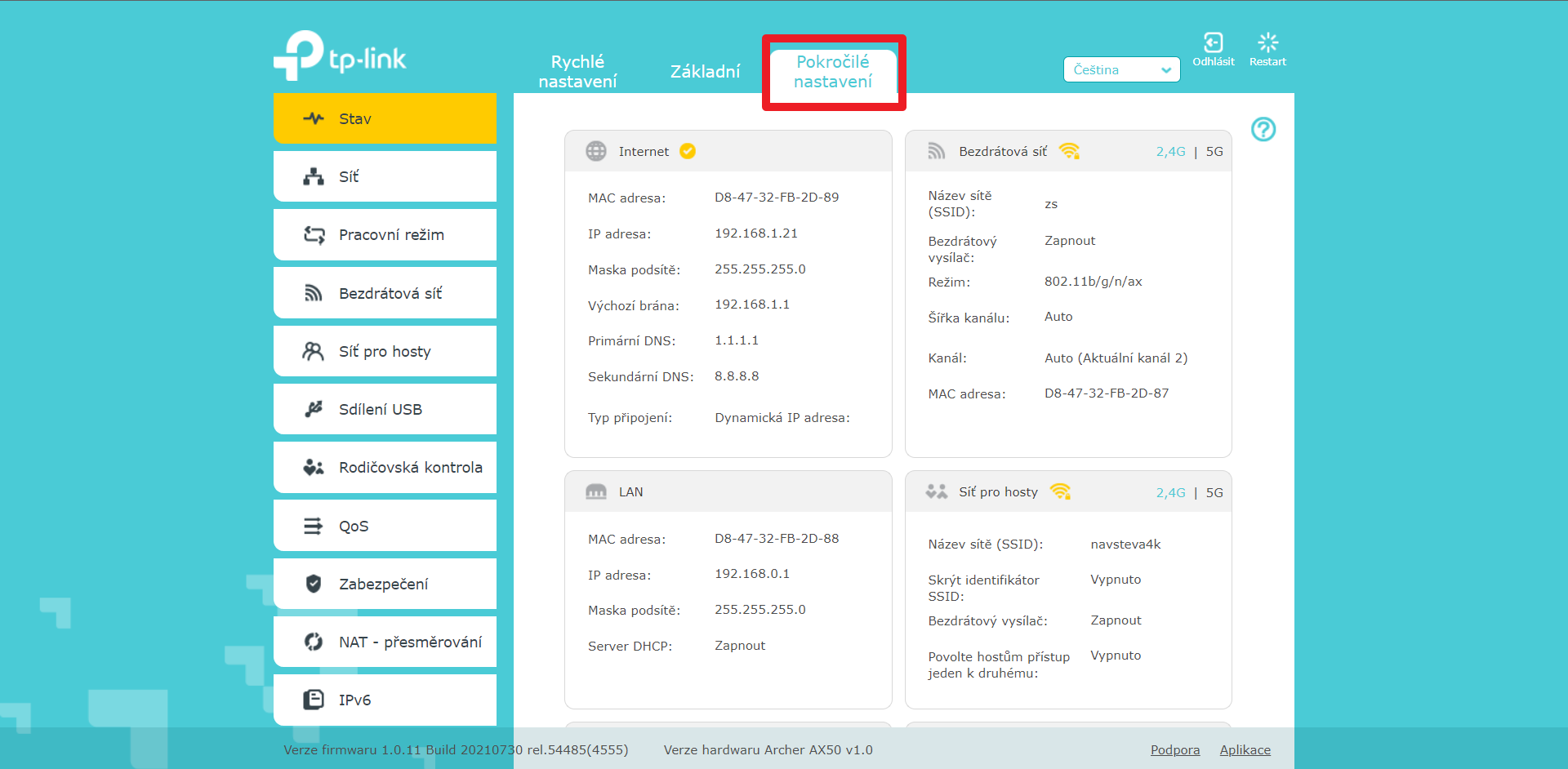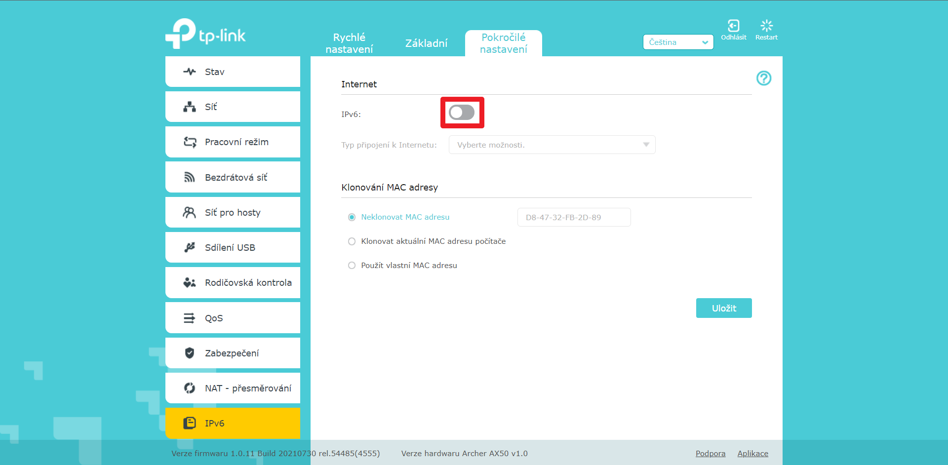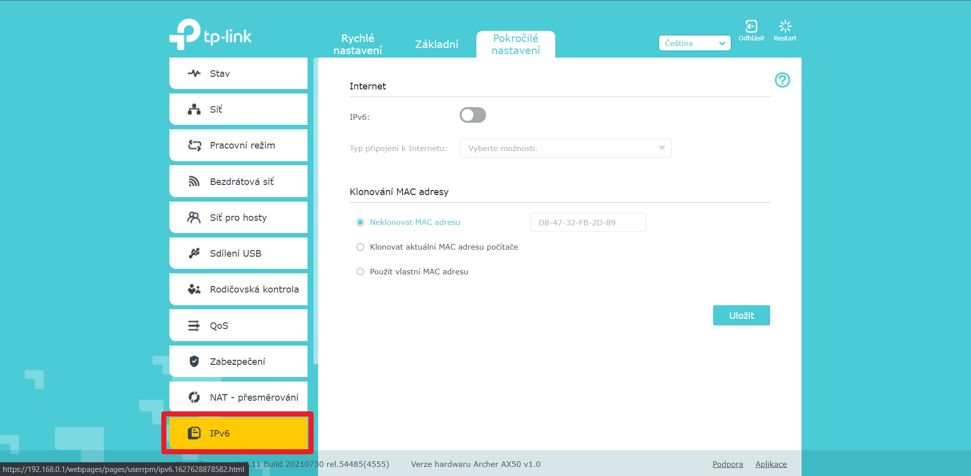 Jak zakázat IPv6 na routeru TP-Link Archer AX50?