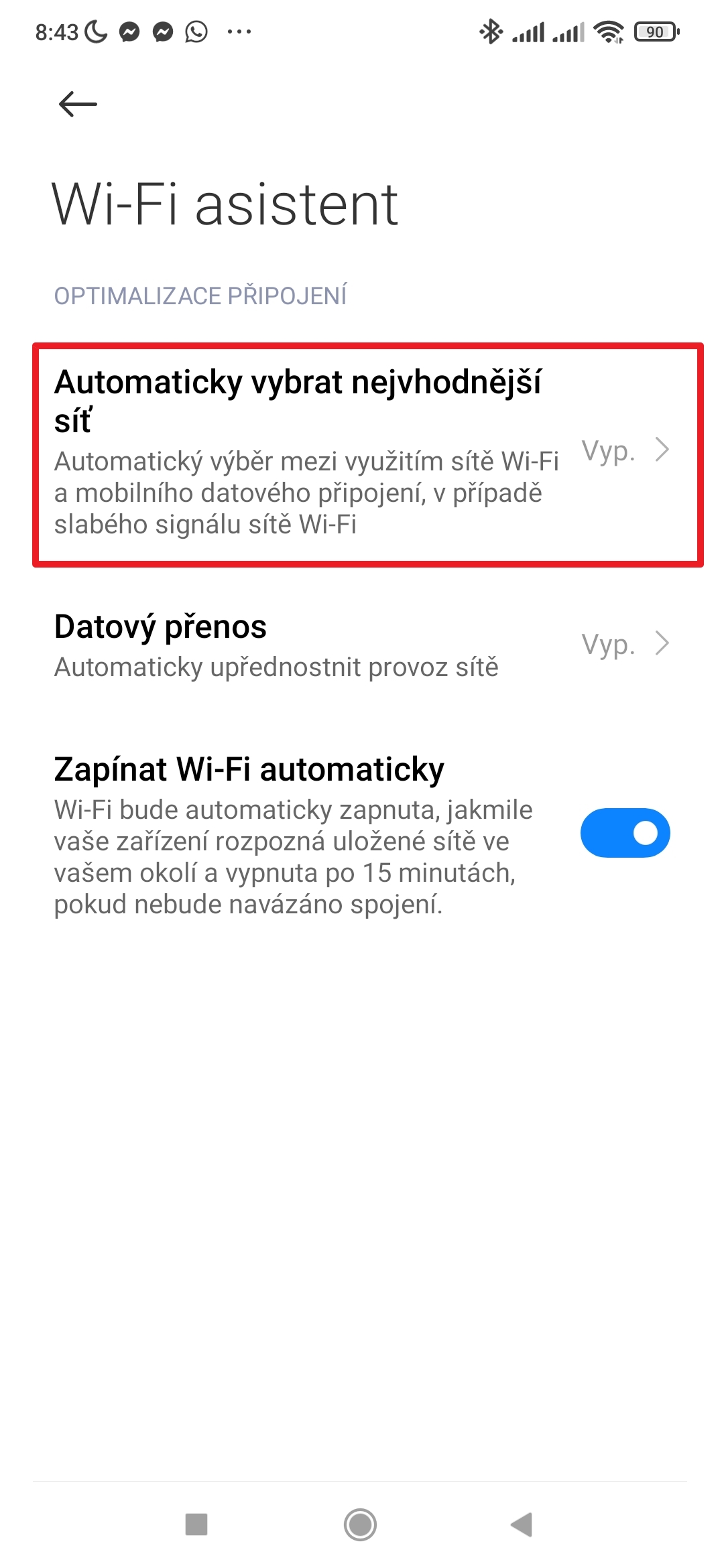 První, co můžete udělat, je vypnutí Wi-Fi asistenta, který v některých případech prostě nefunguje, jak by měl, a dělá více škody než užitku.