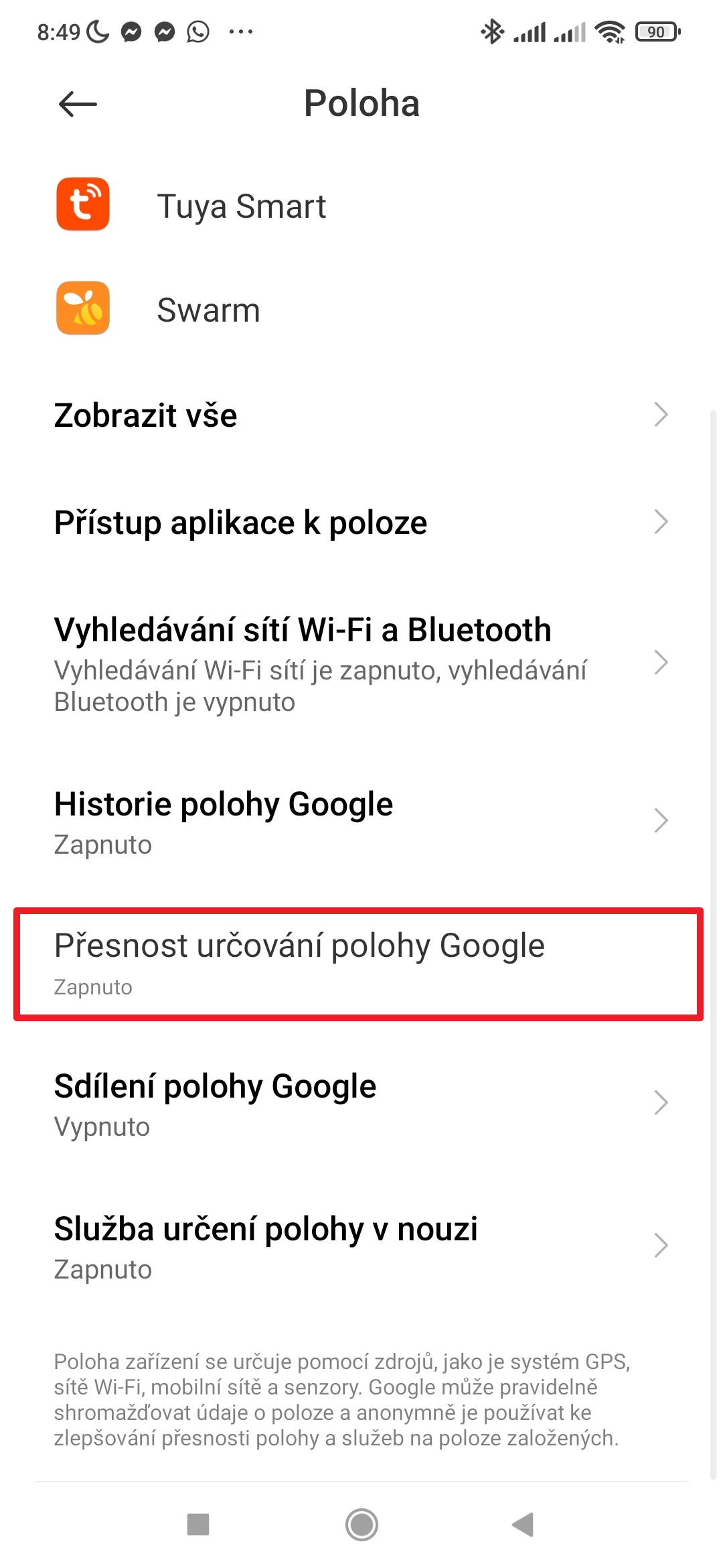 - Deaktivujte přepínač Zvýšit přesnost určování polohy.