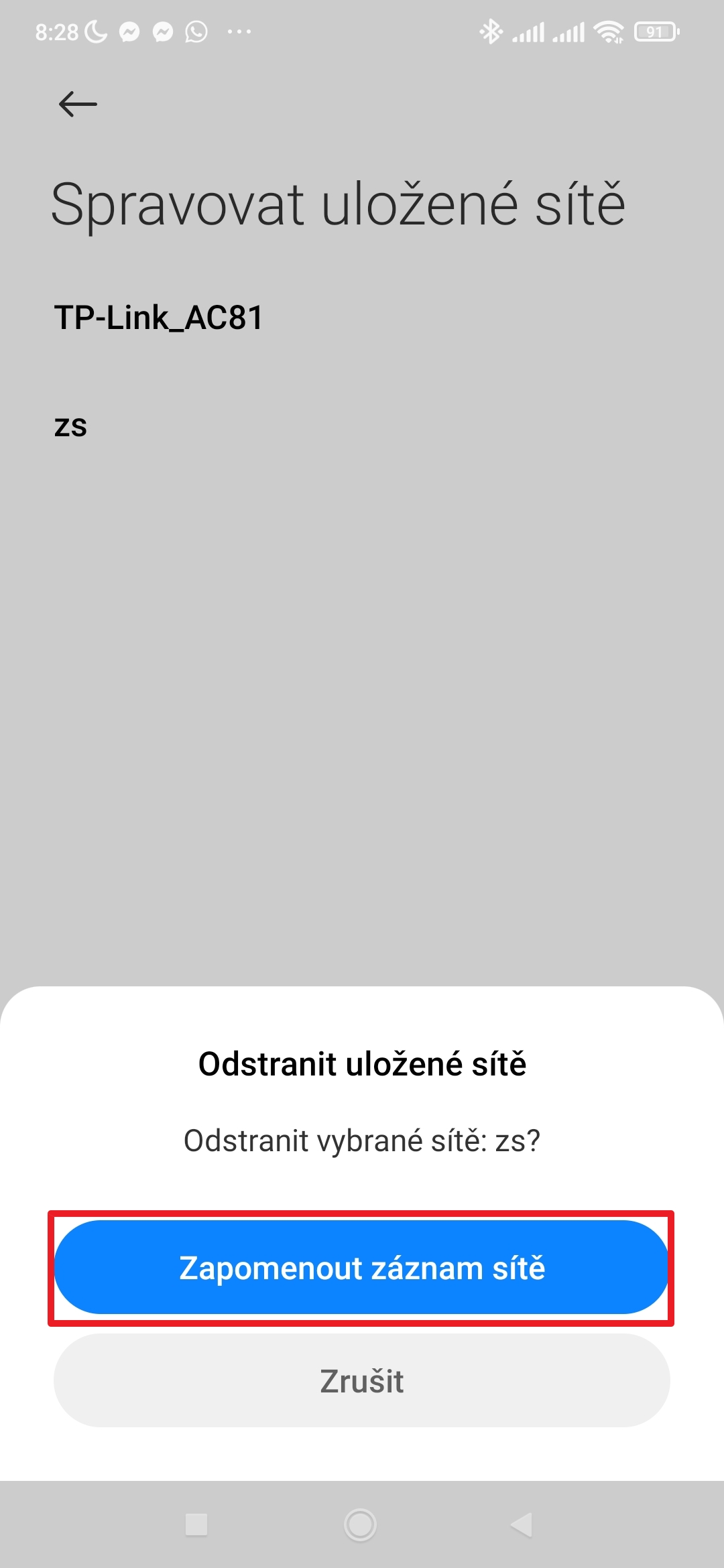 - Stiskněte tlačítko Zapomenout záznam sítě.