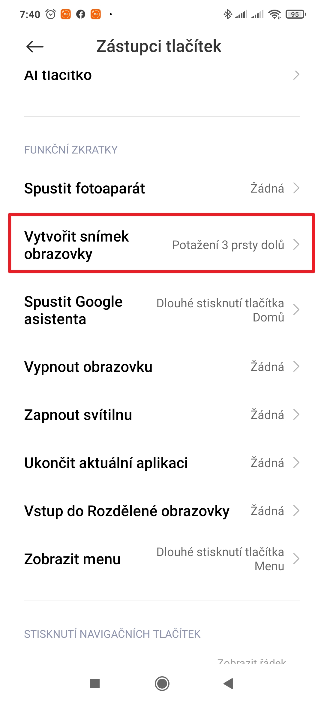 V první kapitole jsme zmínili, že pořizování snímku obrazovky pomocí tlačítek na boku telefonu není ideální třeba v situaci, kdy máte mobil umístěný v držáku. Proto existuje ještě přinejmenším jedna alternativa, kdy snímek pořídíte například přejetím třemi prsty po obrazovce shora dolů. Tuto možnost je však nejprve nutné povolit.