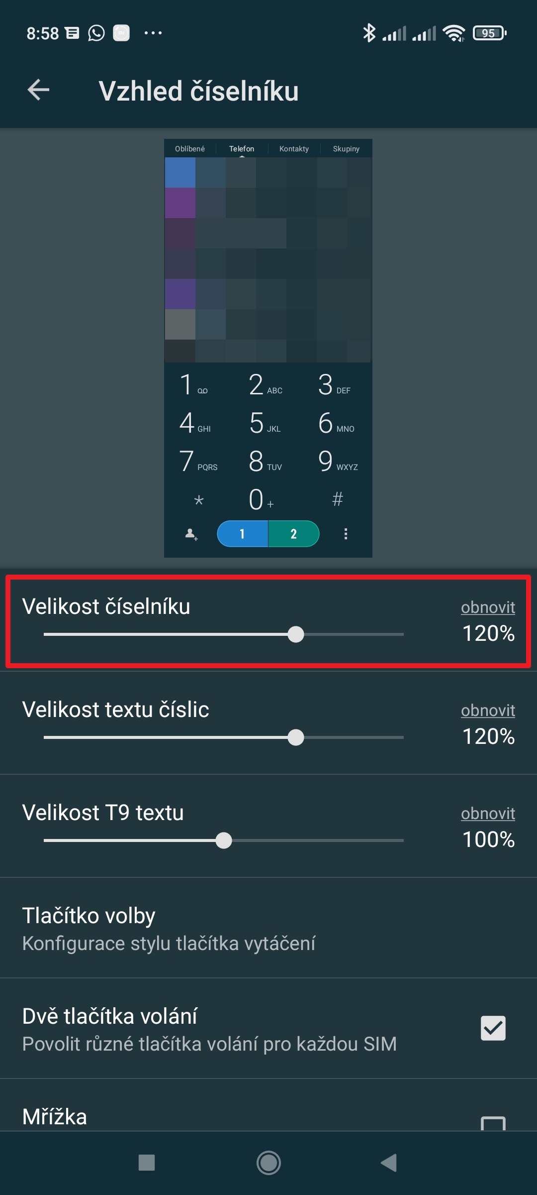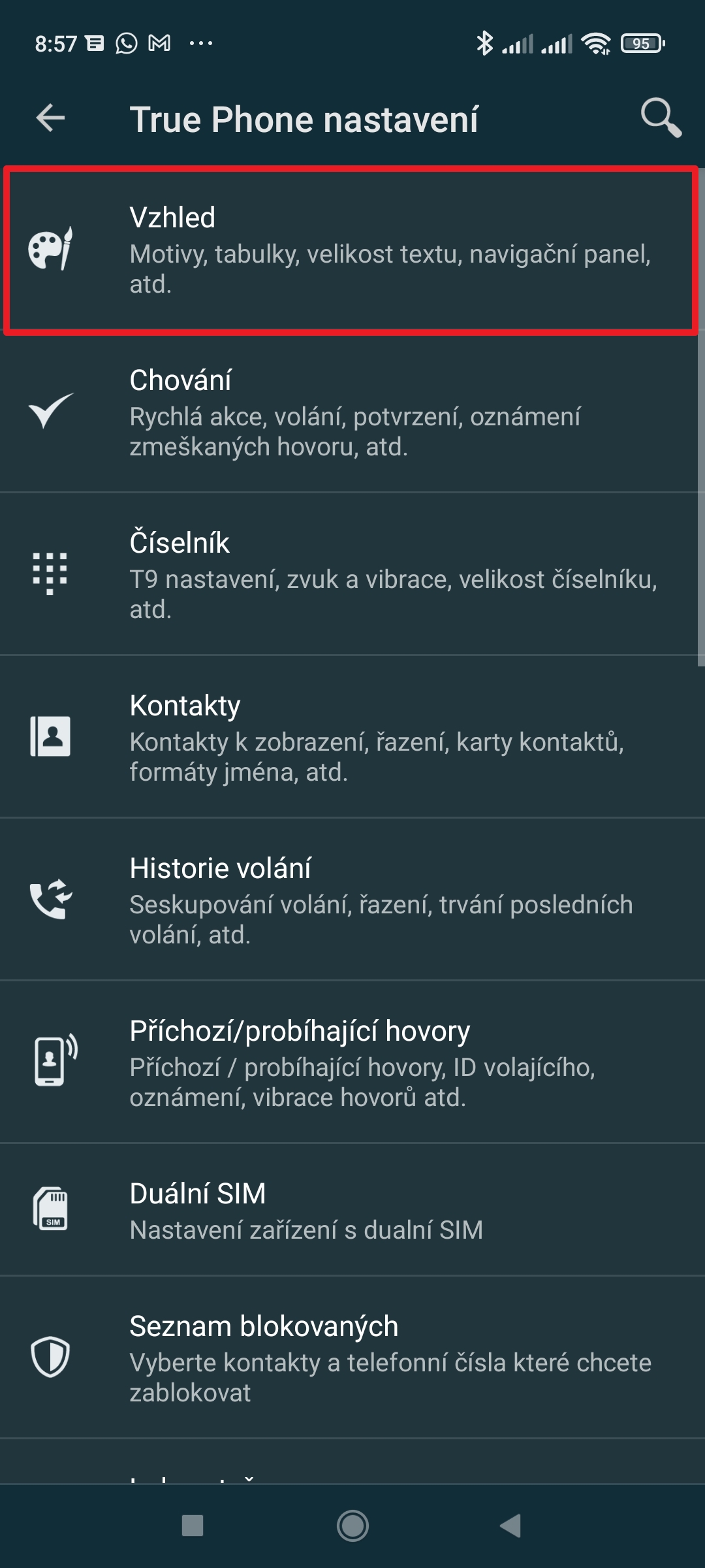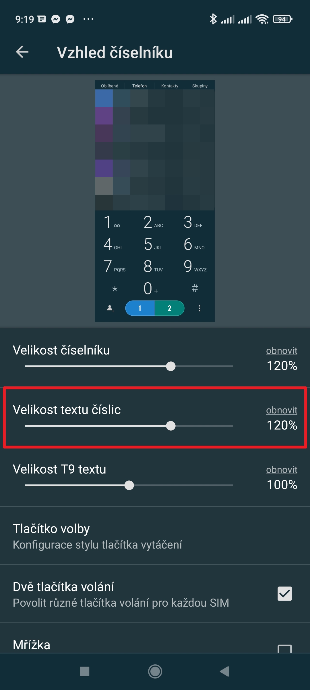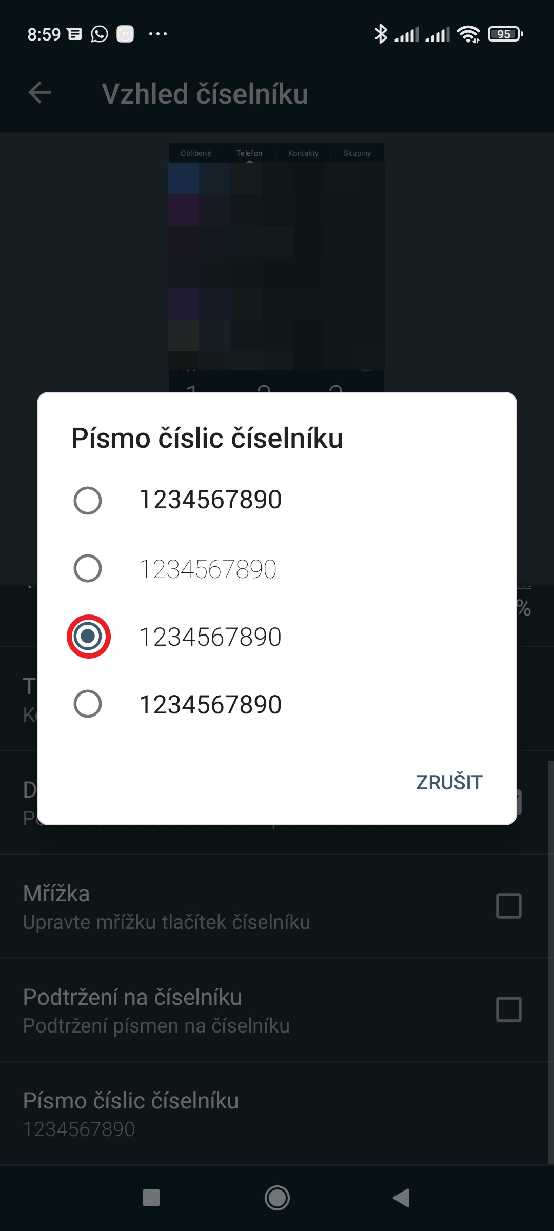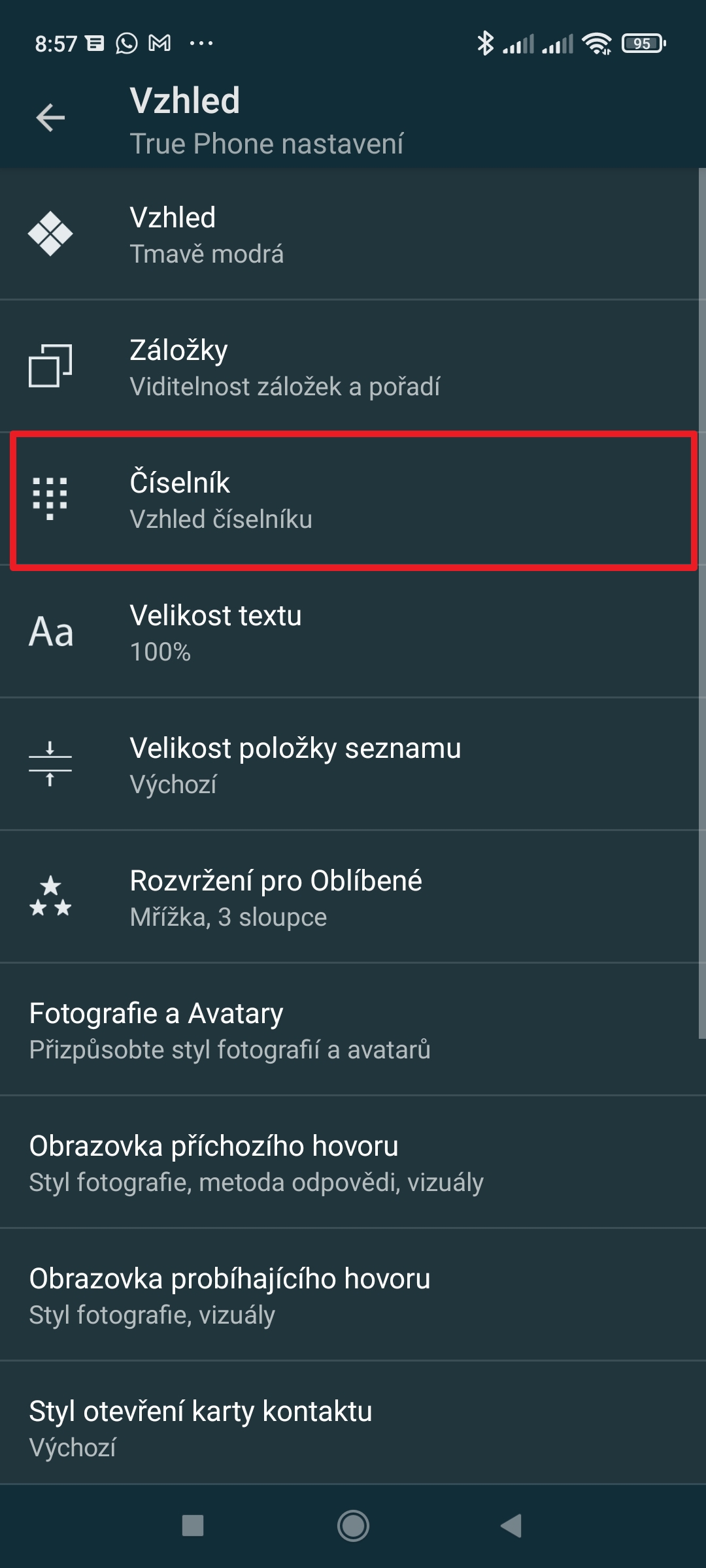 Jak v True Phone Dialer změnit vzhled číselníku?