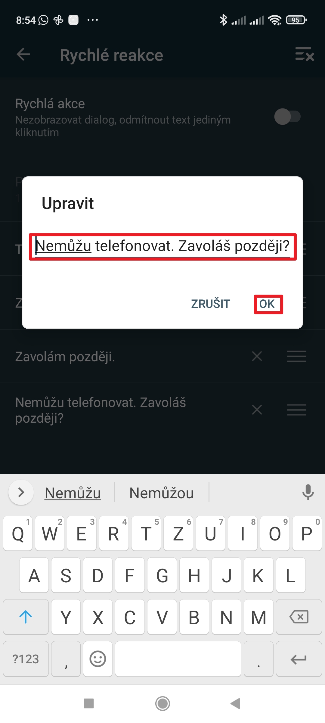 Jak v True Phone Dialer nastavit rychlé reakce?