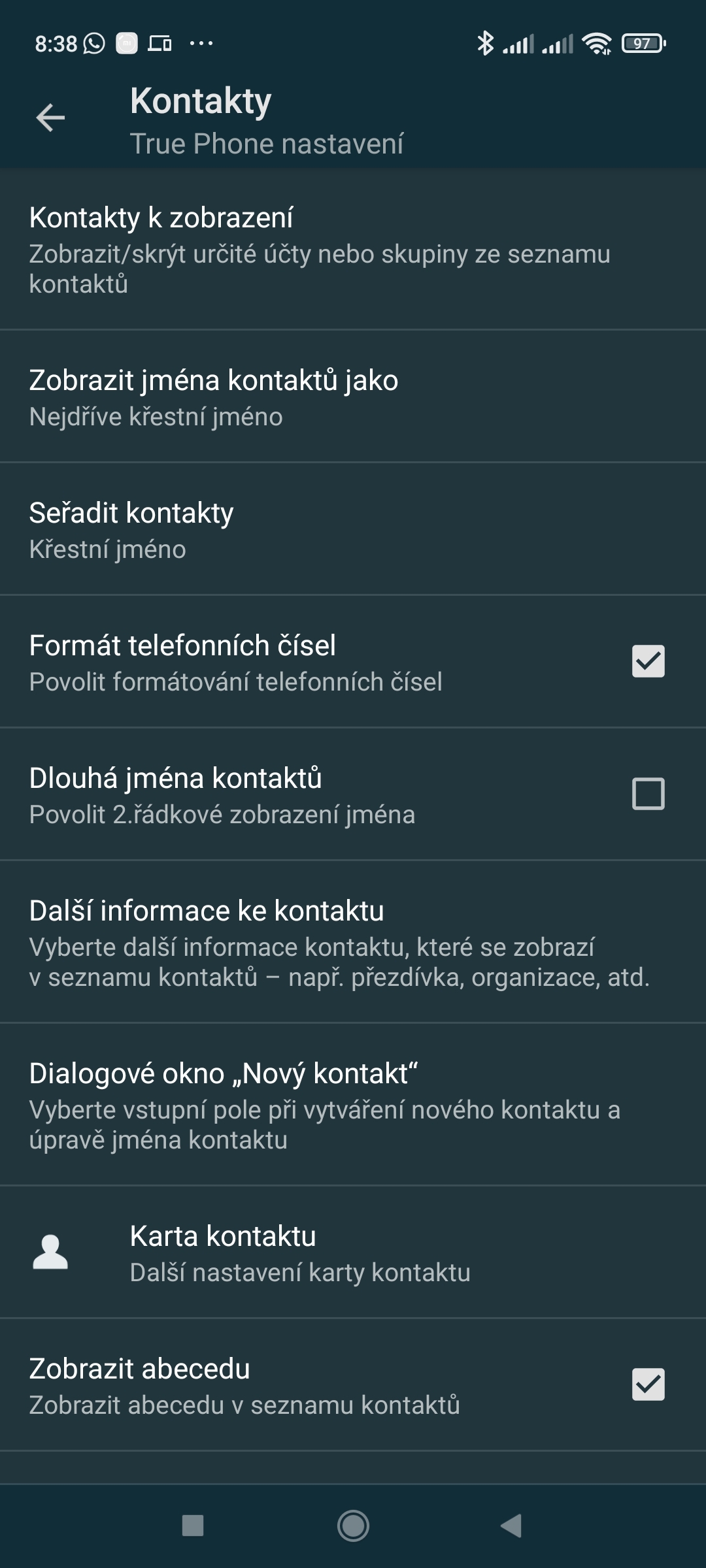 Když v aplikaci True Phone Dialer přejdete na kartu Kontakty, najdete zde všechny kontakty s telefonními čísly seřazené podle abecedy. Chcete kontakty zobrazovat, respektive řadit jinak? Samozřejmě ani to není v této aplikaci problém.