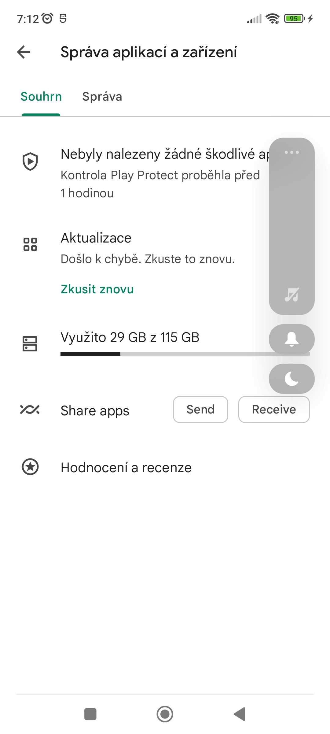 Pokud to nepomůže, tak znovu Nastavení-Aplikace-Správa aplikací-Obchod Google Play a zkuste Odinstalovat aktualizace.