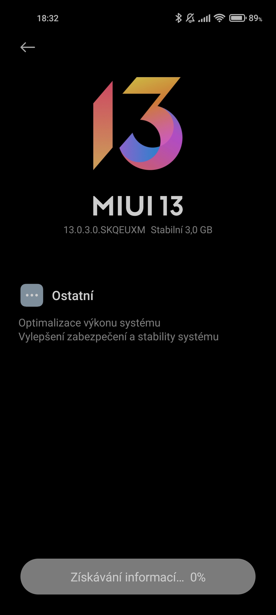 Xiaomi Mi 11 dostal aktualizace na MIUI 13 a Android 12 koncem února. Pokud jste update neobdržel, může to být tím, že máte telefon od operátora (pro ty vydává aktualizace operátor), tzv. „šedivku“ (tj. telefon určený pro jiný trh), nebo je v telefonu něco špatně z hlediska softwaru.
