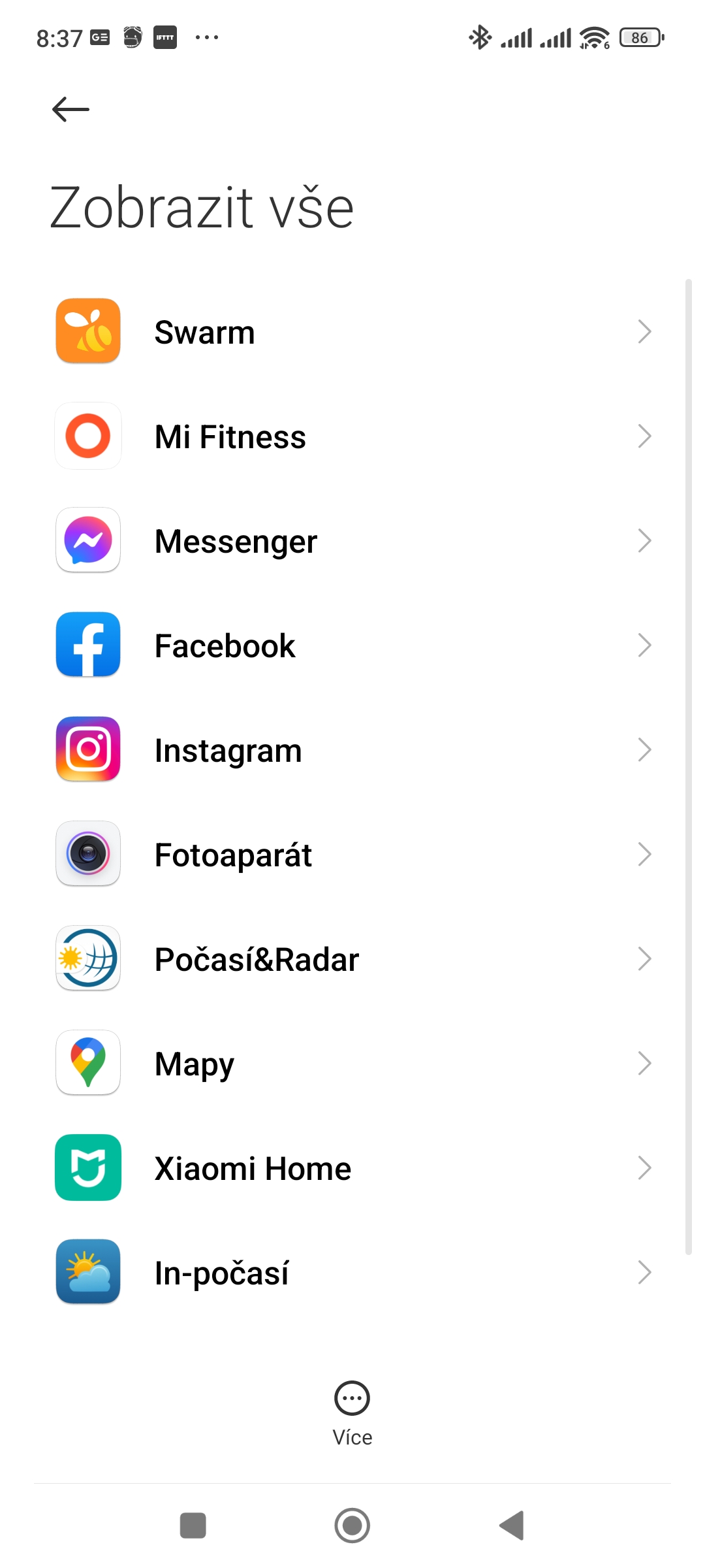 5. Chcete-li v seznamu vidět i systémové aplikace, klepněte na tlačítko Více a zvolte Zobrazit systémové aplikace.