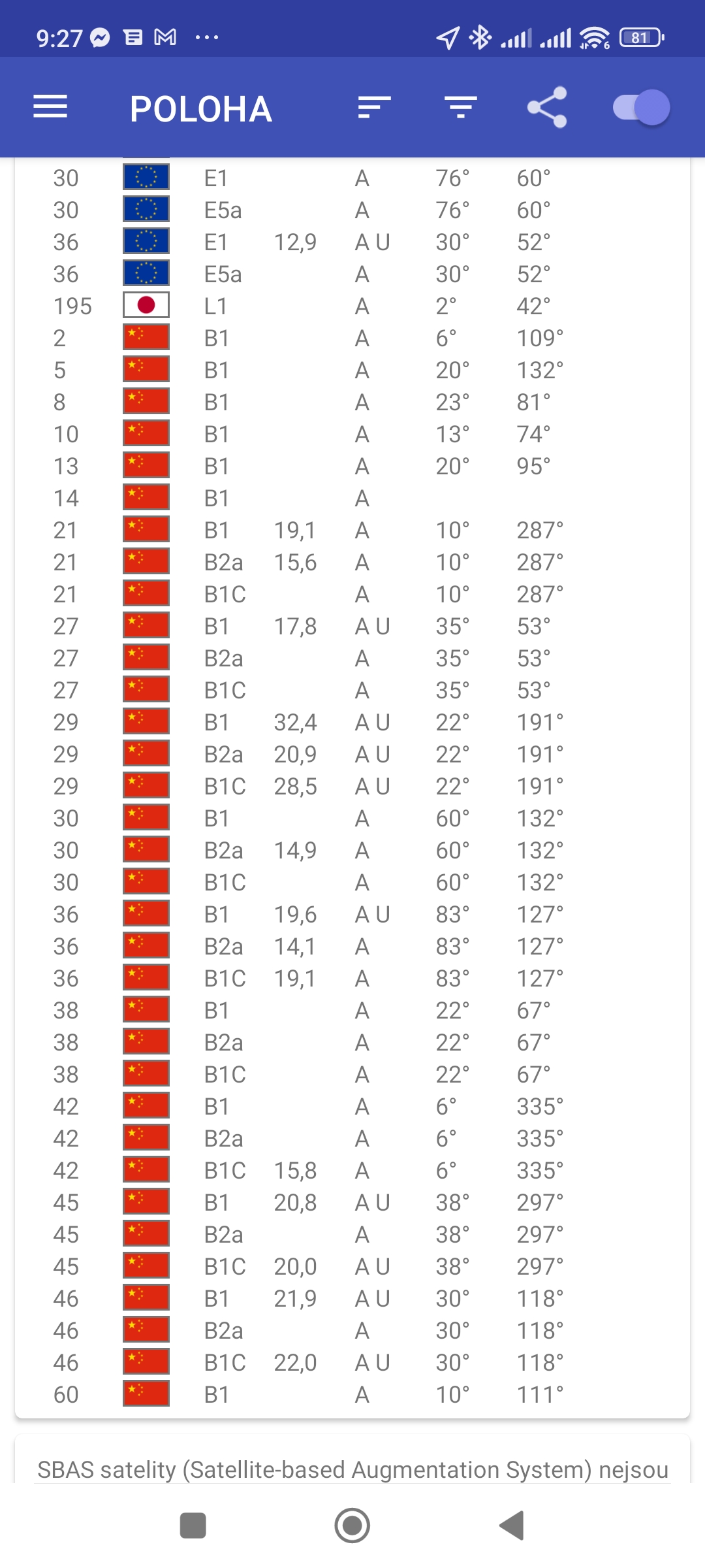 4. Podle vlajek poznáte, které satelitní systémy váš telefon podporuje.
