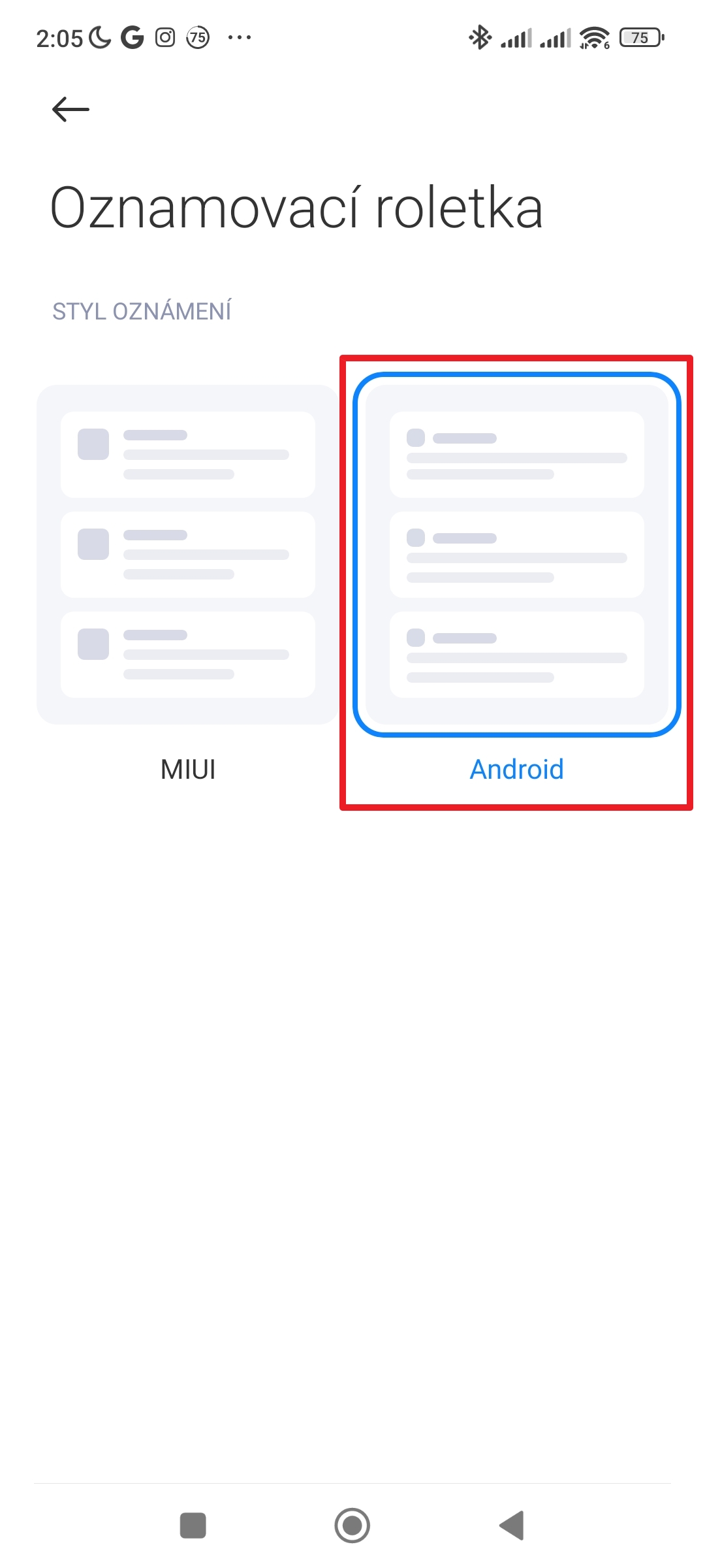 4. Pokud chcete provedení bližší čistému Androidu, zvolte možnost Android.