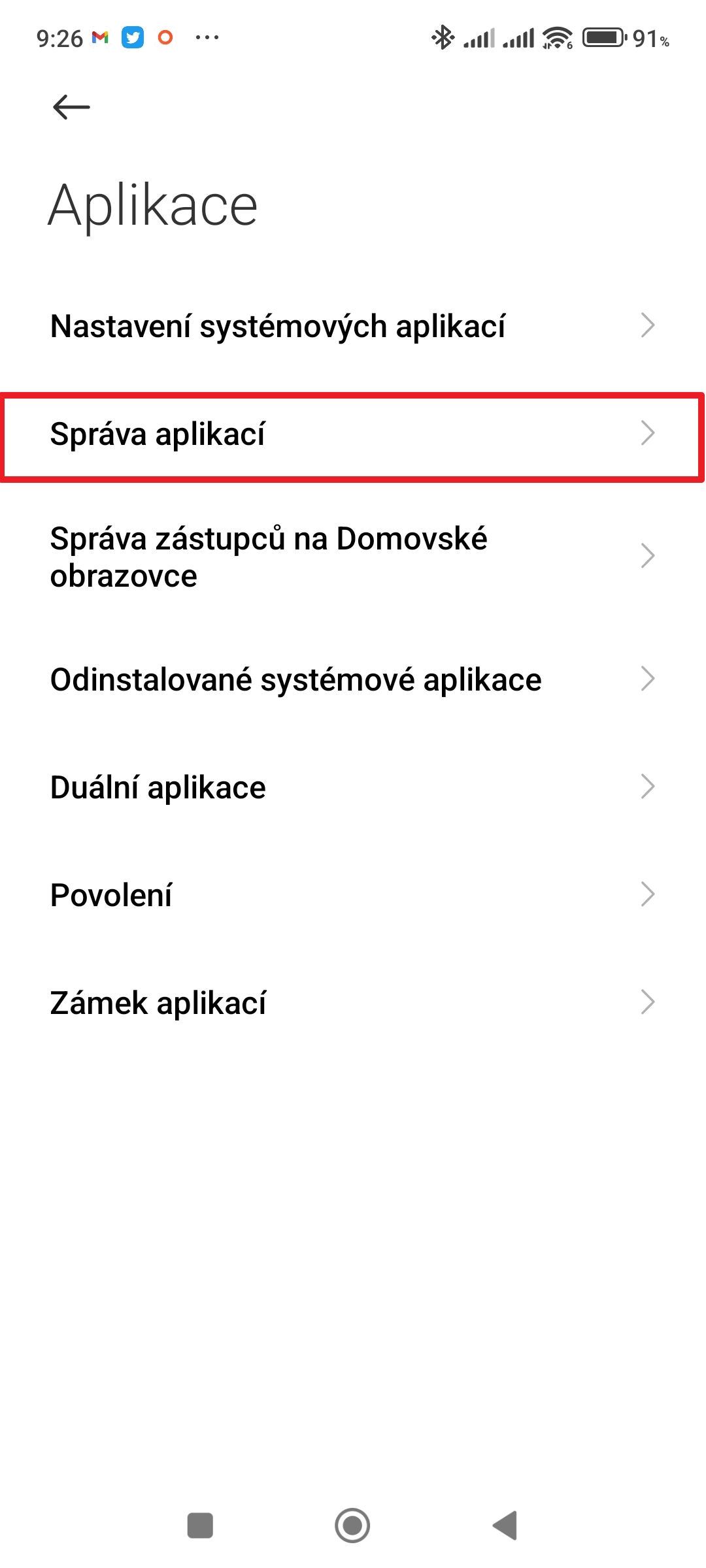 3. Pokračujte do Nastavení systémových aplikací.