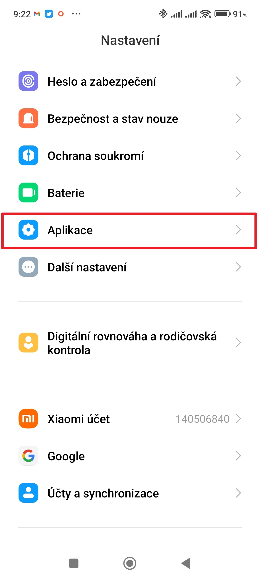 2. Přejděte do sekce Aplikace.
