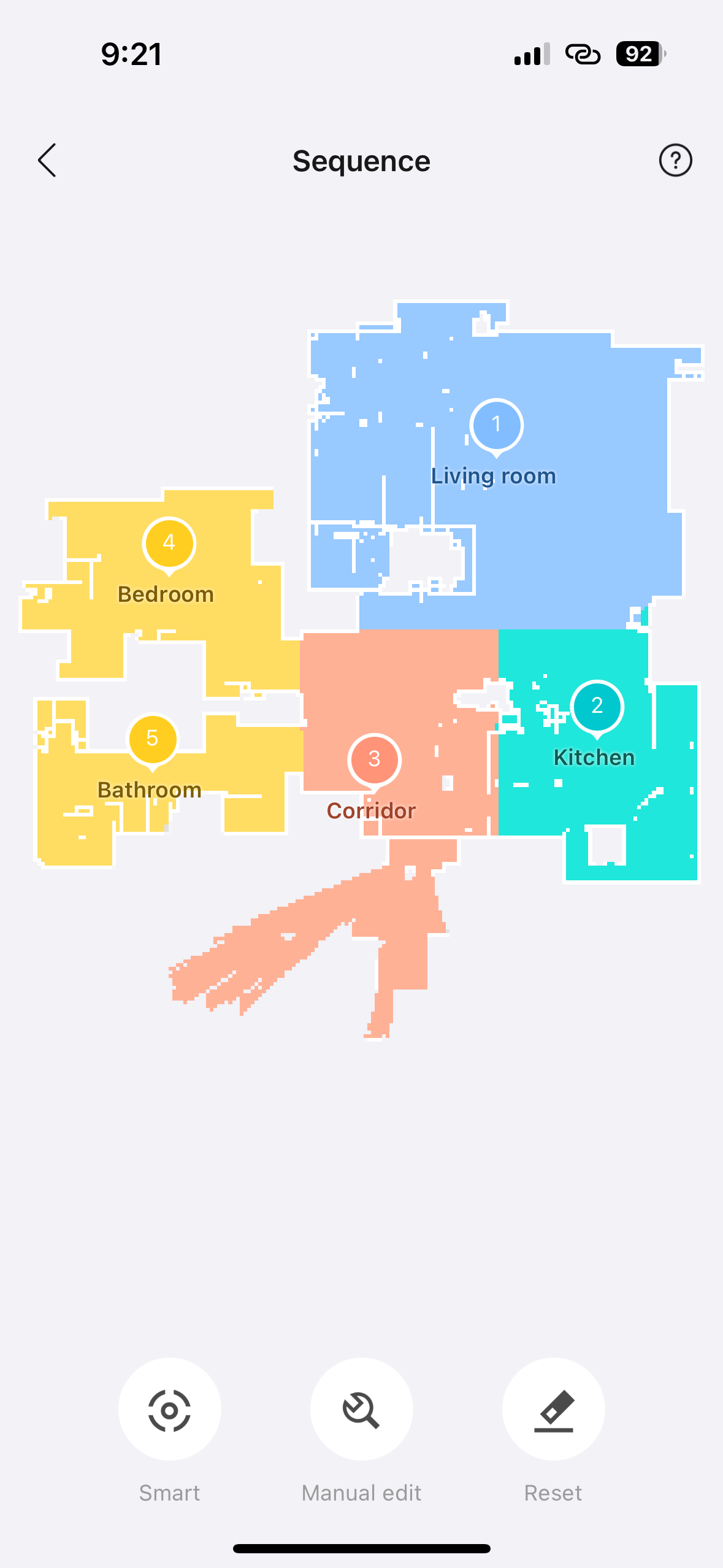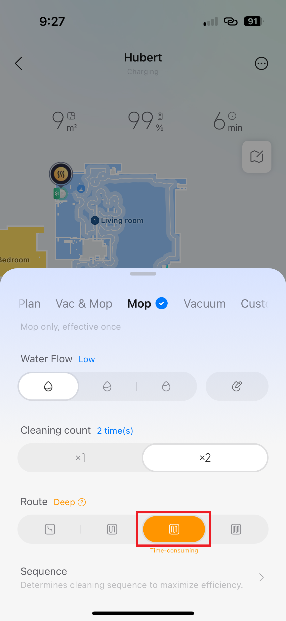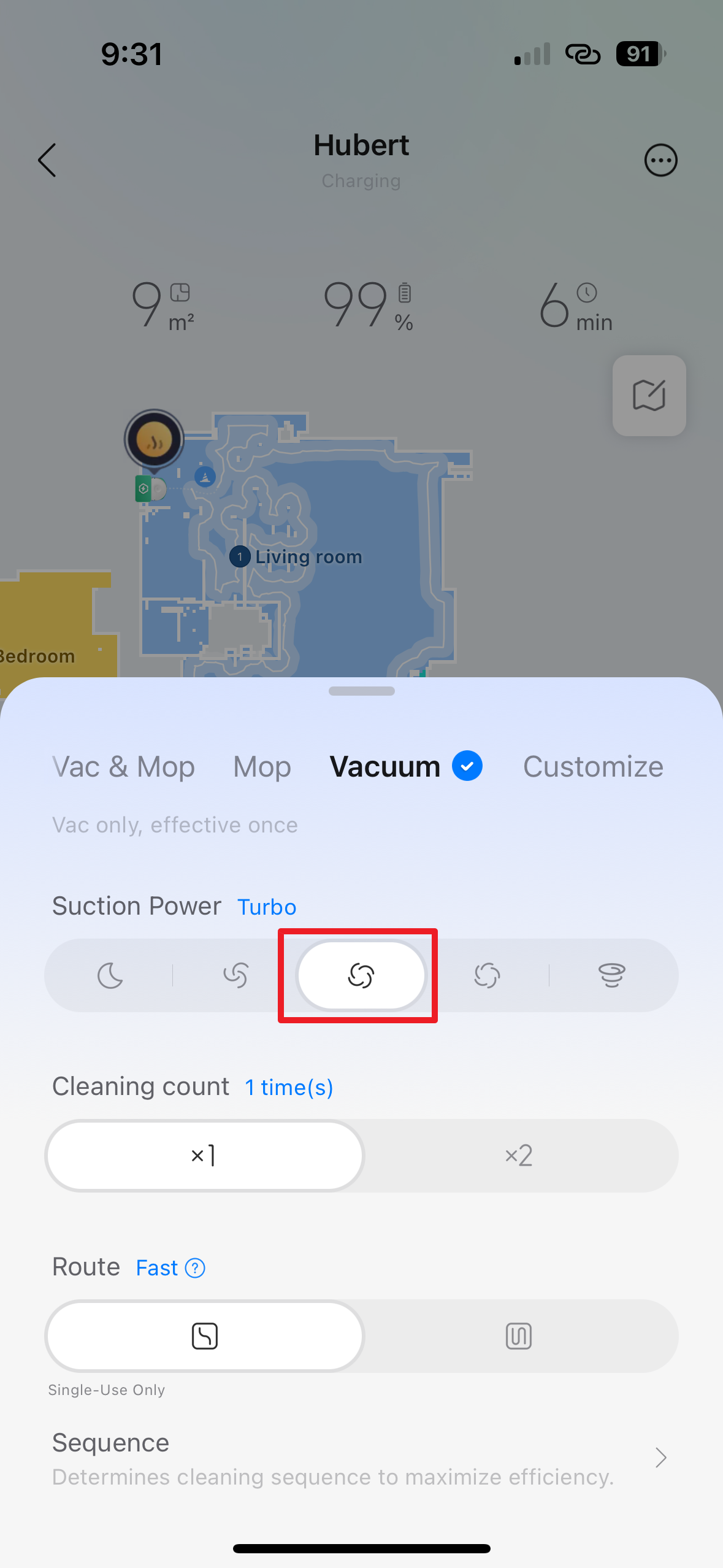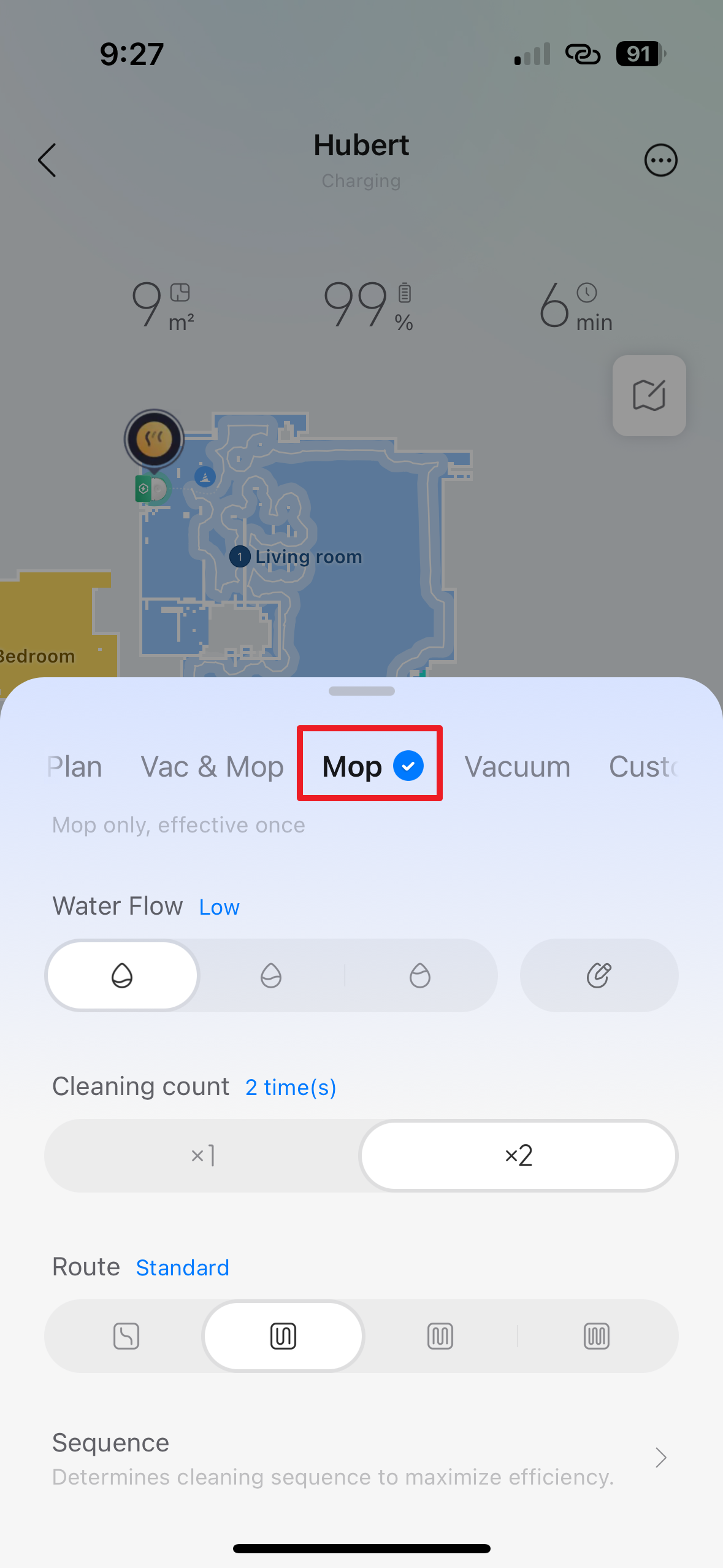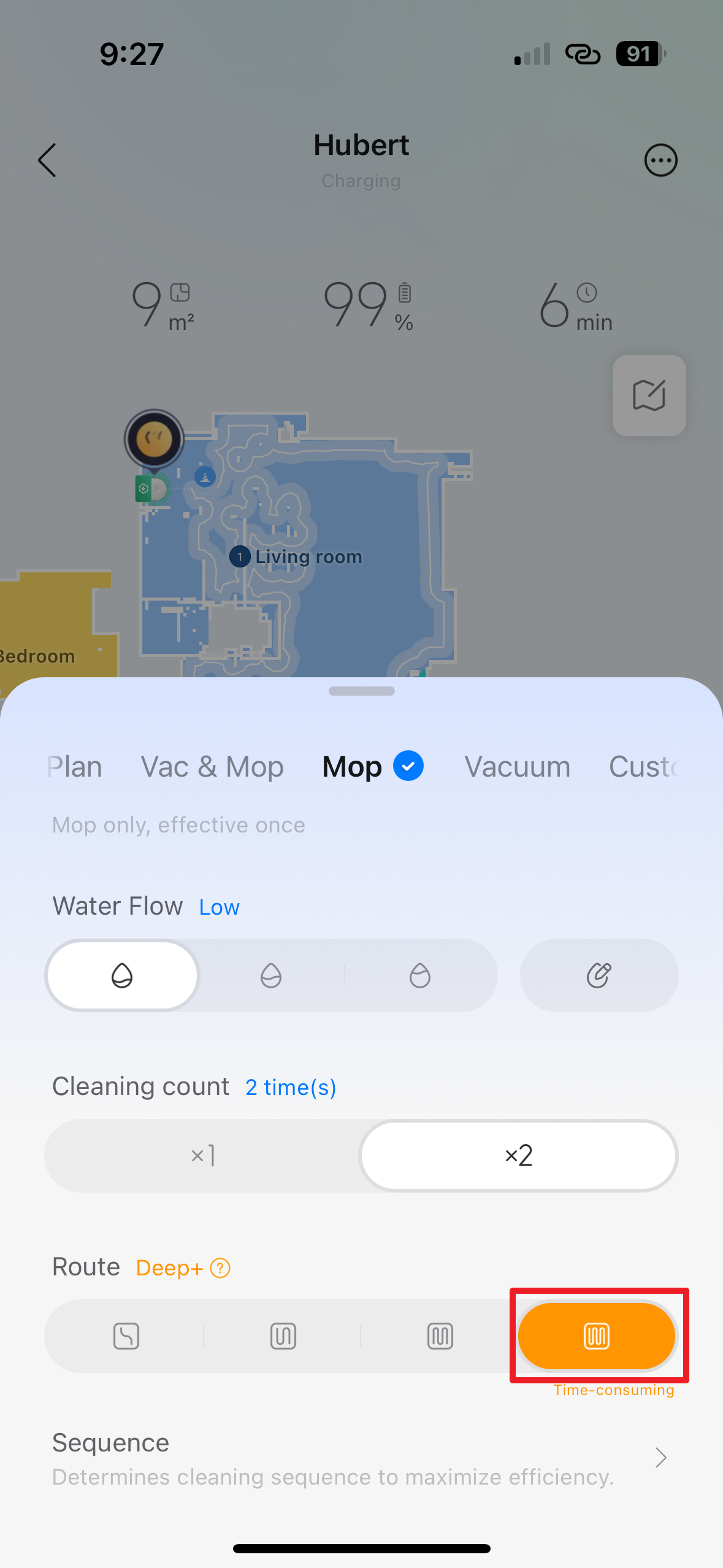 - Sequence – v této sekci si můžete zvolit pořadí, v jakém bude vysavač uklízet jednotlivé místnosti.
