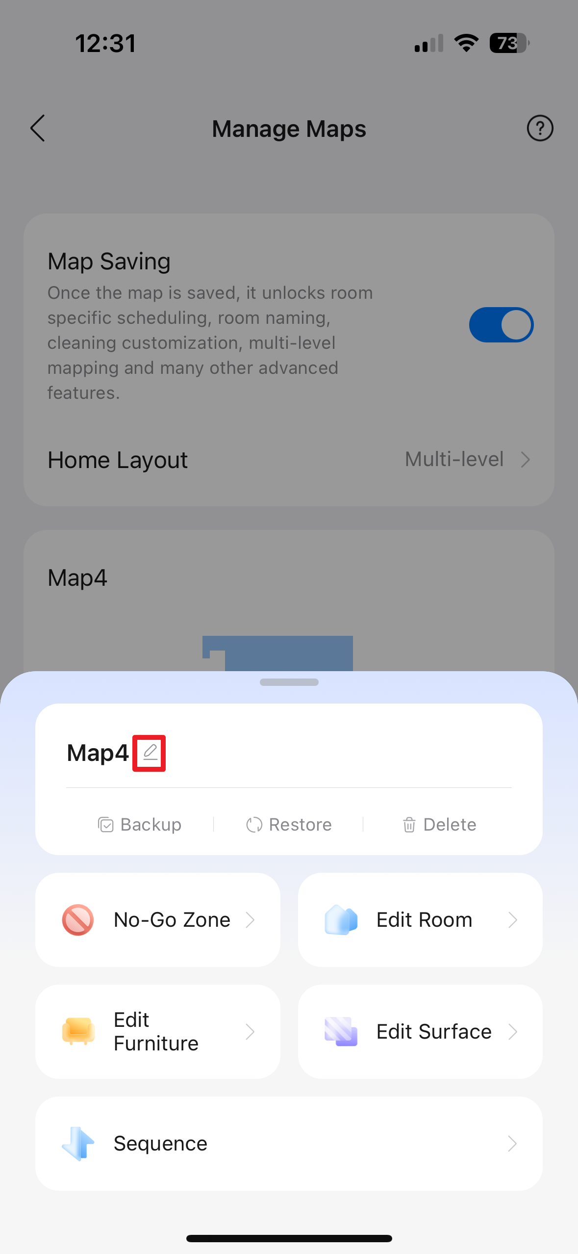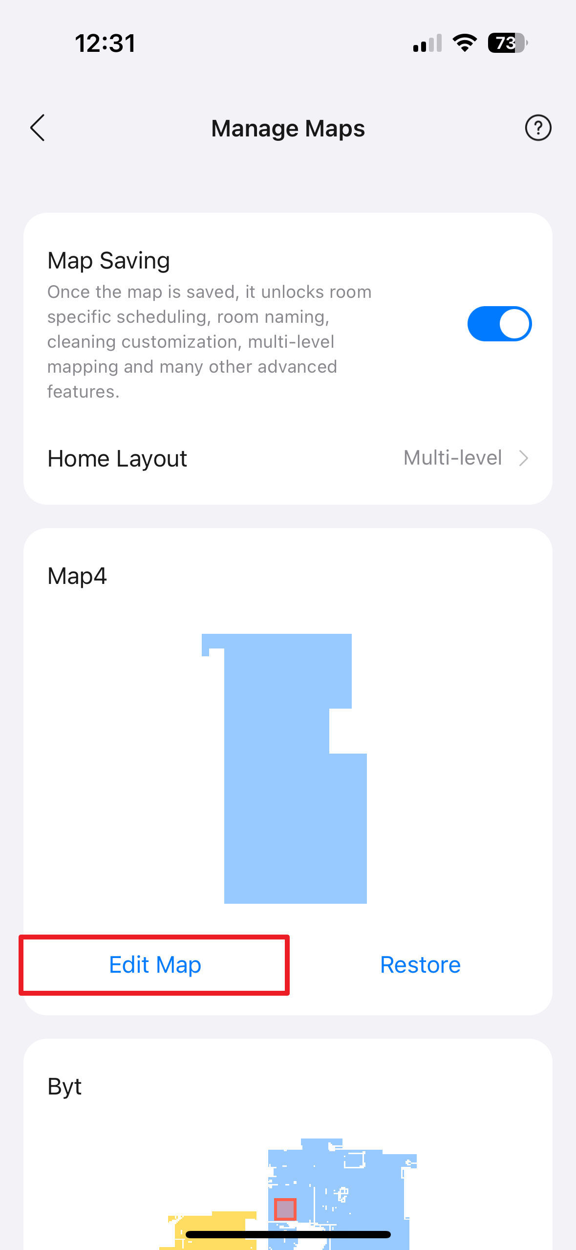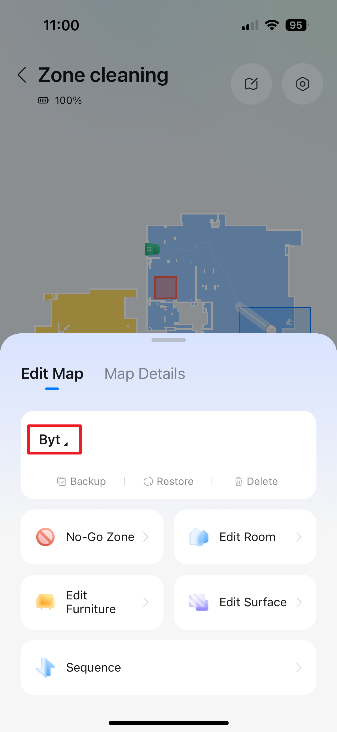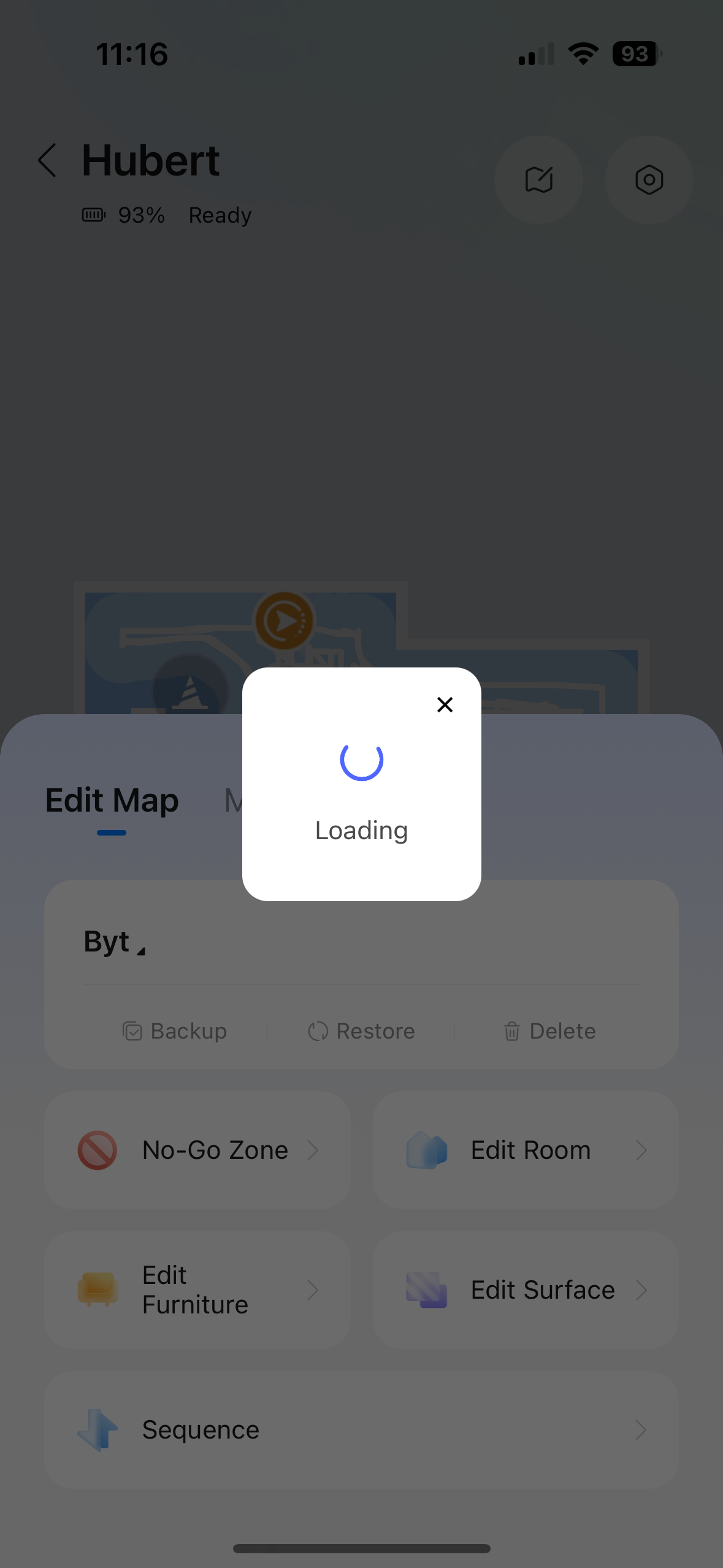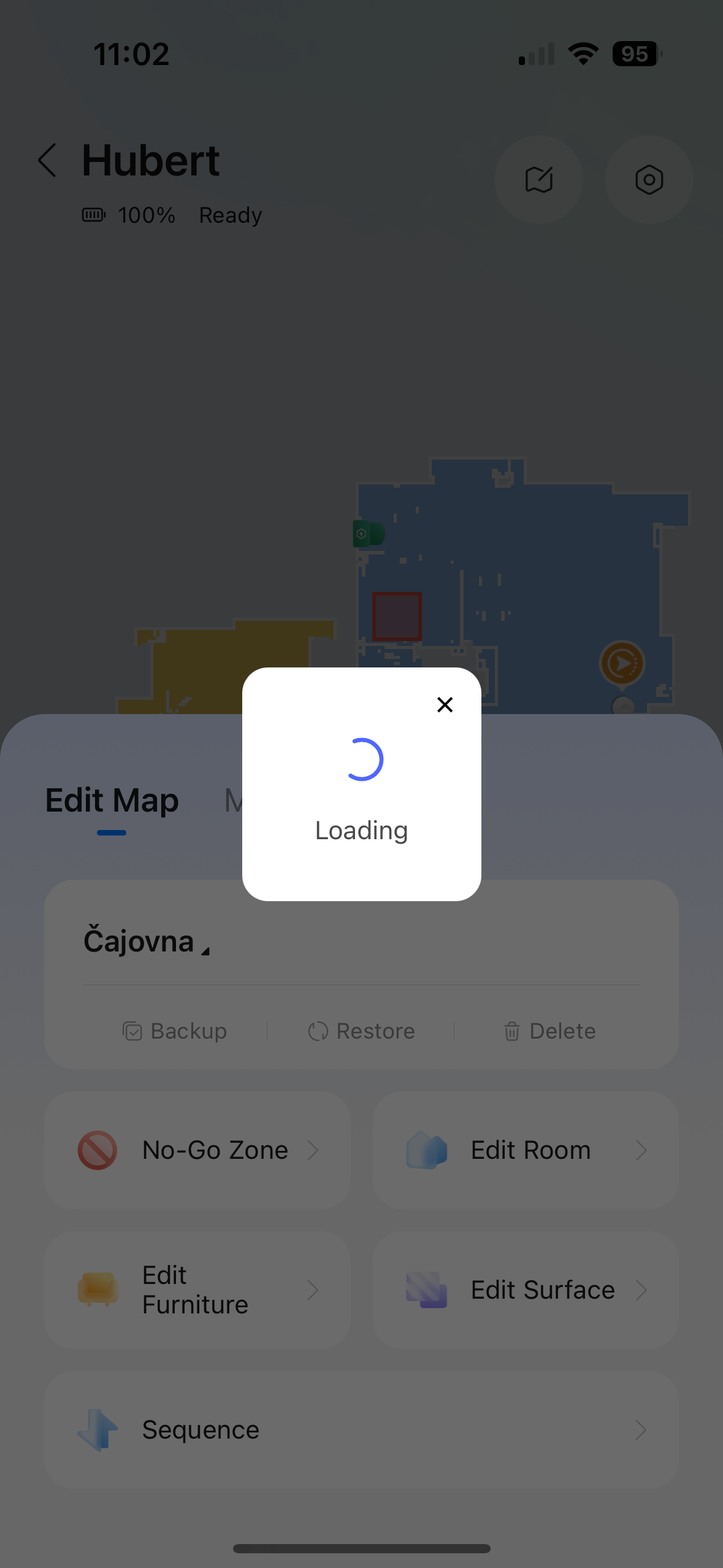 Vysavač začíná vytvářet mapu Vysavač vytváří mapu Mapa je hotová - Když se následně vrátíte do sekce Manage Maps, klepněte na tlačítko Edit Map.