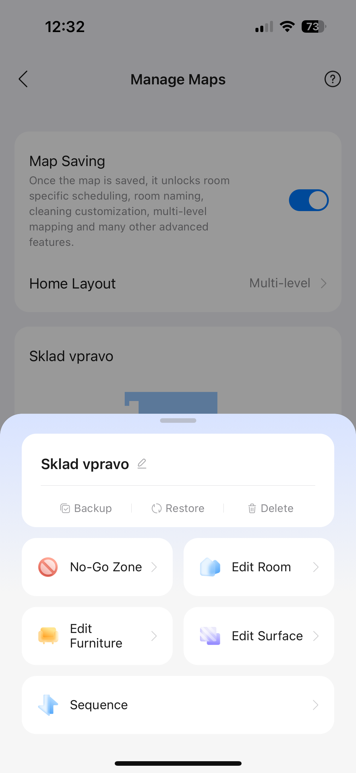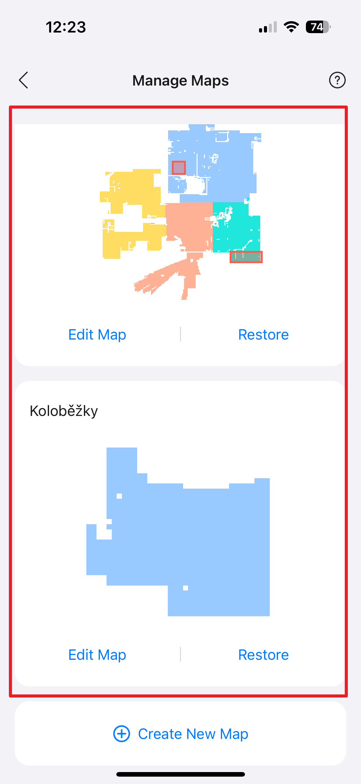 - Zobrazí se seznam všech map, které vysavač aktuálně zná.