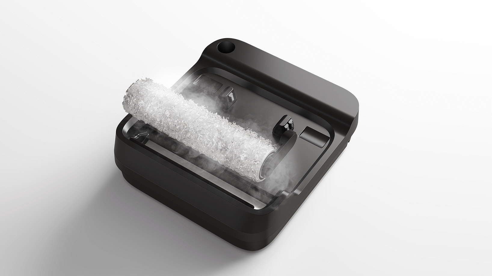 Po skončení úklidu přichází na řadu samočisticí stanice. Ta dokáže rotační kartáč nejen propláchnout, ale rovnou ho vypere v horké vodě. Během tohoto procesu se rozpustí i odolné nečistoty a mastnota, což vede k odstranění až 99,99 % skvrn, a hlavně k eliminaci nepříjemných pachů. Odpadá tak nutnost zdlouhavého ručního čištění kartáče po každém úklidu.
