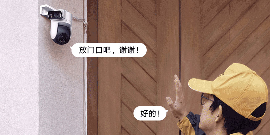 Xiaomi Outdoor Camera CW500 Dual Camera je vybavena citlivým mikrofonem a výkonným reproduktorem, takže přes ní lze oboustranně komunikovat hlasem s osobami nacházejícími se v její blízkosti. Pokročilý algoritmus umělé inteligence zajišťuje, že je zvuk hlasitý a jasný, a to i na větší vzdálenost. Můžete tak například instruovat kurýra, kam má uložit balíček.