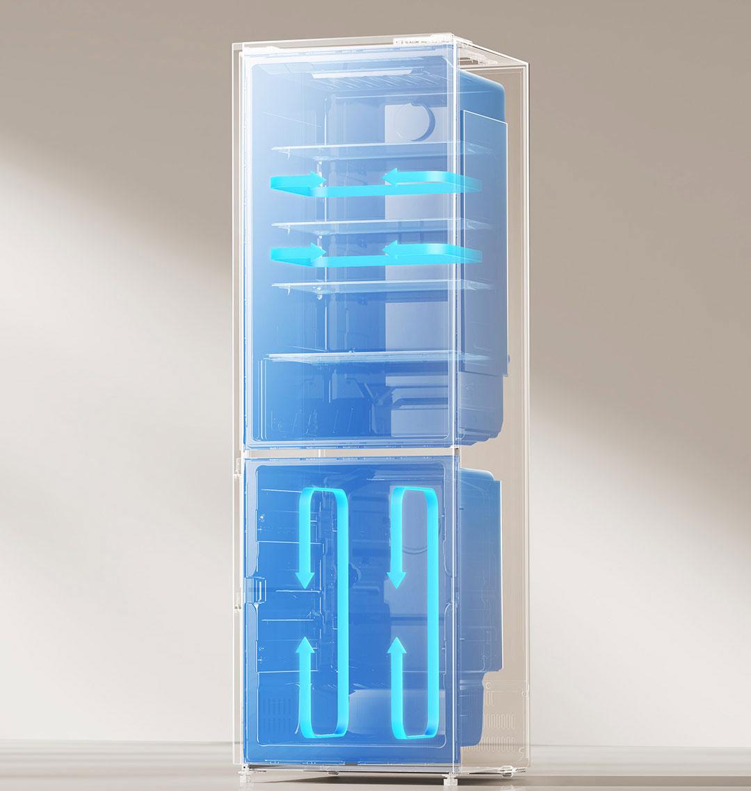 Technologie cirkulace chladicího vzduchu zabraňuje slepování potravin, čímž je zajištěno jejich snadné vyjmutí a zároveň zachovávána čerstvost a křehkost. Odpadá také nutnost ručního odmrazování. Chladicí prostor je navíc vybaven antibakteriálním a dezodoračním modulem s ionty stříbra, který účinně pohlcuje pachové molekuly.