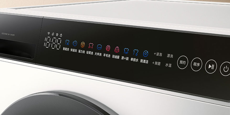 Xiaomi Mijia Washing Machine Slim Fully Integrated Drum 10kg je designově velmi pěkně zpracovaná, takže snadno zapadne prakticky do jakéhokoli interiéru. V horní části se nachází široký dotykový ovládací panel s obrazovkou a šuplíkem pro prací prostředky.