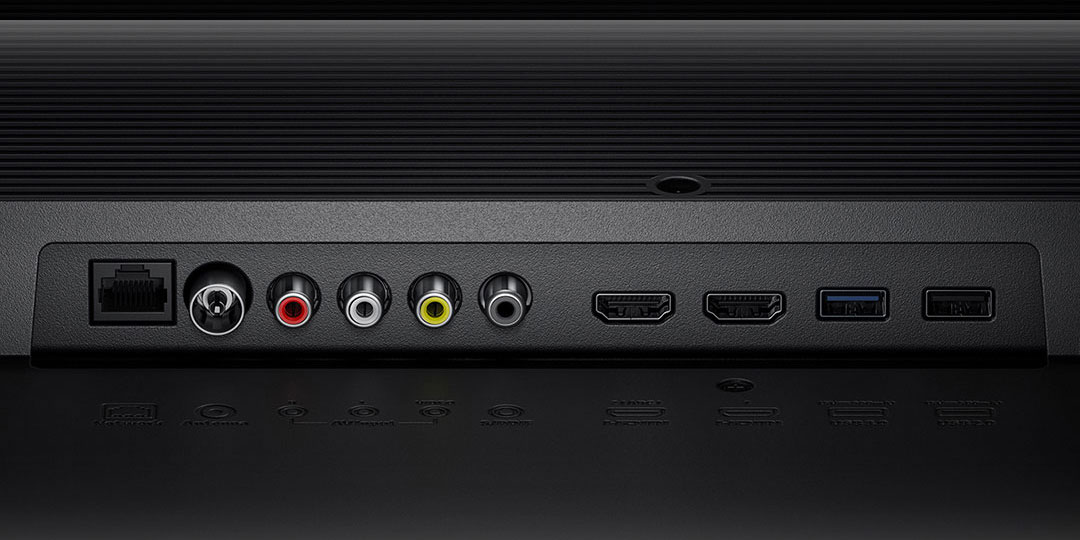 Na zadní straně najdeme poměrně slušnou konektorovou výbavu. K dispozici jsou dva porty HDMI, dva porty USB (z toho jeden podporuje standard USB 3.0), konektor pro připojení k síti LAN, klasický anténní vstup, jeden port S/PDIF a jedna sada konektorů AV input.