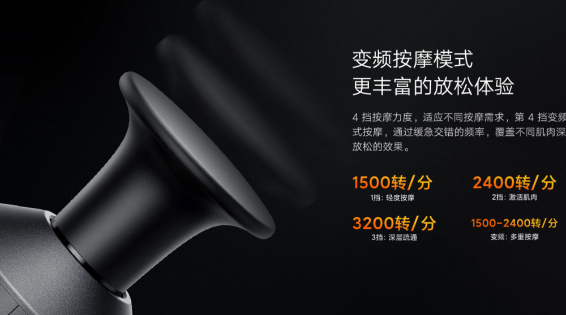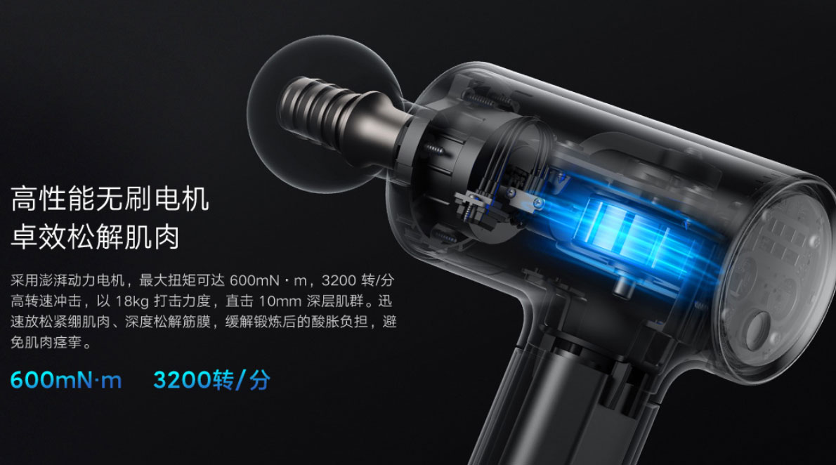 Xiaomi Mija Fascia Gun 2 nabízí čtyři úrovně síly masáže. Integrovaný motor má maximální točivý moment 0,6 Nm a rychlost až 3200 otáček za minutu. Dokáže poskytovat údery silou odpovídající až 18 kilogramům, přitom je poměrně tichá – deklarovaná hlučnost je jen 45 decibelů.
