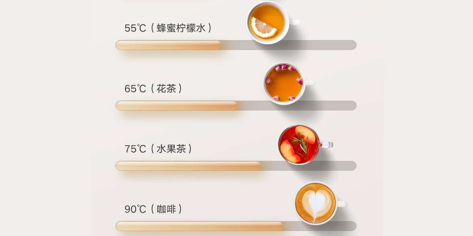 Multifunkční rychlovarná konvice Xiaomi umožňuje nastavení požadované teploty v rozmezí od 40 do 90 °C v krocích po 5 ° C. Nabízí také možnost udržovat teplotu po dobu až dvanácti hodin, díky čemuž zůstanou jídla a nápoje teplé a čerstvé po dlouhou dobu, což je ideální pro rodiny nebo při přípravě předem.