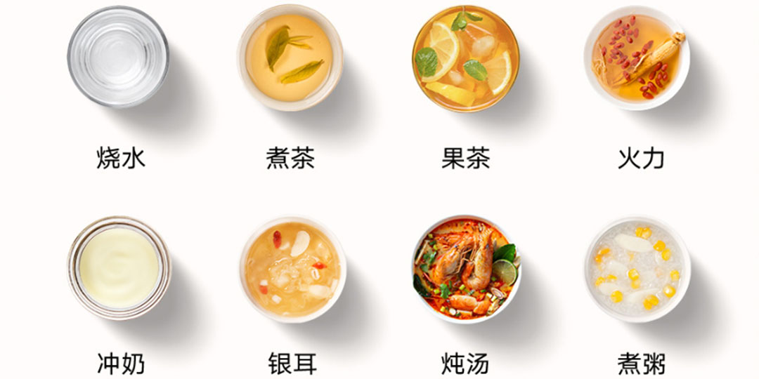 Xiaomi Mijia Multifunctional Health Pot S1 nabízí osm režimů, které umožňují uživatelům variabilně vařit a připravovat různé druhy nápojů a pokrmů. V konvici tak lze připravovat různé chutné a aromatické nápoje, které dobře chutnají i voní. K dispozici jsou následující režimy: