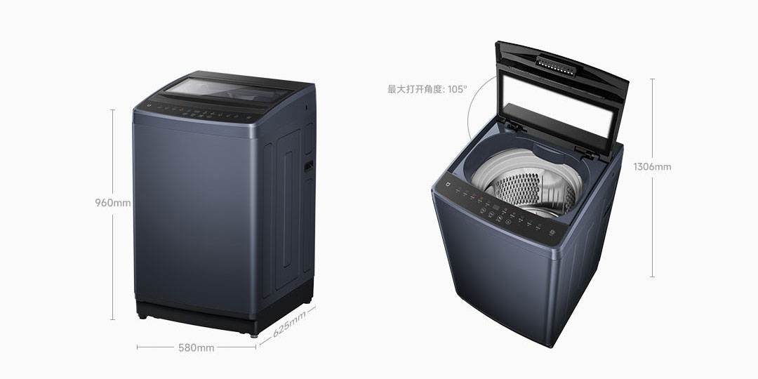 Pračka má tmavé provedení a její rozměry jsou 580 × 625 × 960 milimetrů. Dvířka na horní straně se otevírají v úhlu až 105° a v otevřeném stavu dosahují do výšky 1306 milimetrů. Celý přístroj váží 38 kilogramů a dle výrobce se jedná o spotřebič druhé nejúspornější kategorie (dle čínských norem).