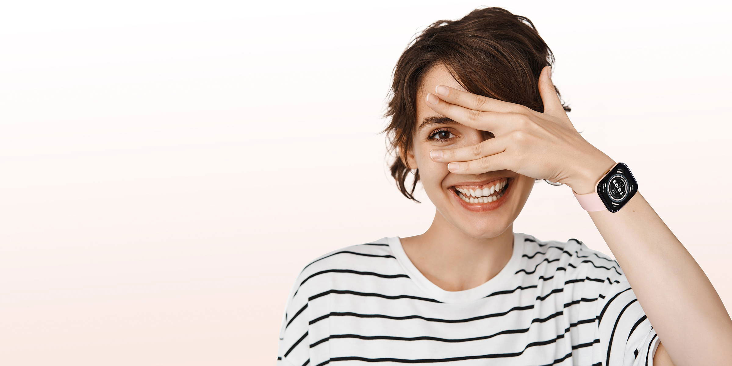 Hodinky mají obdélníkový tvar, podobně jako Apple Watch, měří 45,94 × 38,09 × 11,2 milimetrů a bez řemínku váží jen 26 gramů. Tělo je vyrobeno z plastu vyrábí se ve třech barevných variantách: černé (Soft Black), bílé (Cream White) a růžové (Pastel Pink). Kromě dotykového displeje lze k ovládání používat také jedno mechanické tlačítko umístěné na boku.