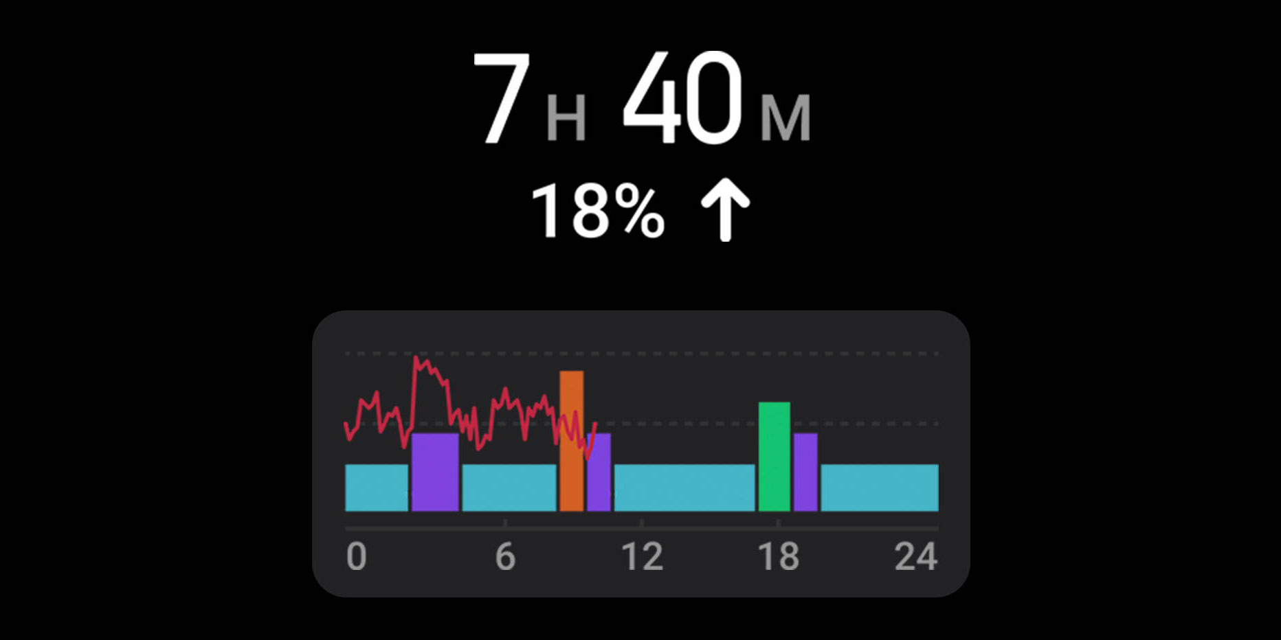 Nechybí ani podrobné sledování spánku. Amazfit Bip 5 automaticky rozpoznávají začátek i konec spánku a umí detekovat jednotlivé fáze (hluboký spánek, lehký spánek, fáze REM). Kromě toho mohou také sledovat kvalitu dýchání během spaní, díky čemuž mohou odhalit zdravotní potíže, jako je například spánková apnoe. Výsledky prezentují v podobě snadno pochopitelného číselného skóre.