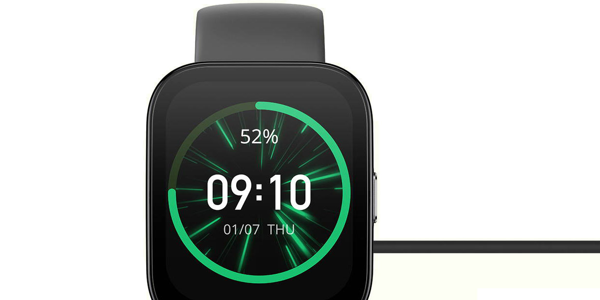 K nabíjení slouží kabel, který se k hodinkám připevňuje pomocí magnetu. Na tomto místě je však vhodné podotknout, že součástí balení není nabíjecí adaptér – ten budete muset mít vlastní, případně lze hodinky nabíjet z portu USB notebooku nebo počítače. Plné nabití zcela vybité baterie zabere přibližně dvě hodiny.